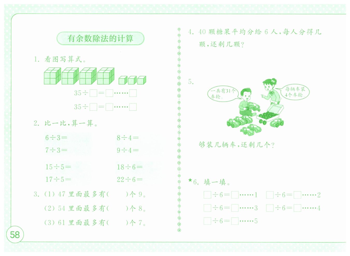 解析:題目考查有余數(shù)除法的計(jì)算。在有余數(shù)的除法中,余數(shù)小于除數(shù)。本題除數(shù)是6,余數(shù)可以是1、2、3、4、5。需要分別找出被除數(shù),使得除法運(yùn)算后余數(shù)是1、2、3、4、5。
