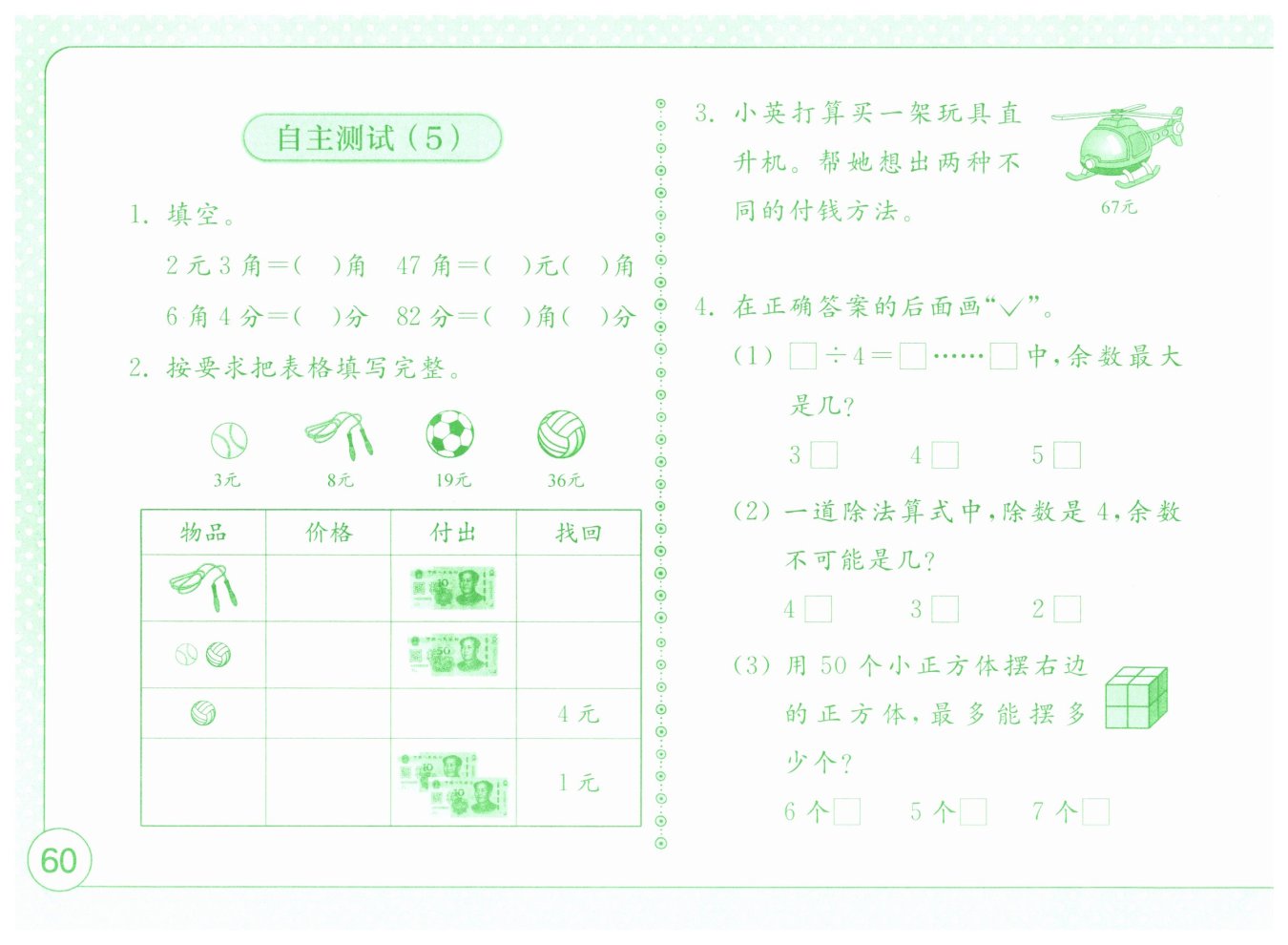 (1) 在算式$□÷4=□\cdots\cdots□$中,除數(shù)是$4$。