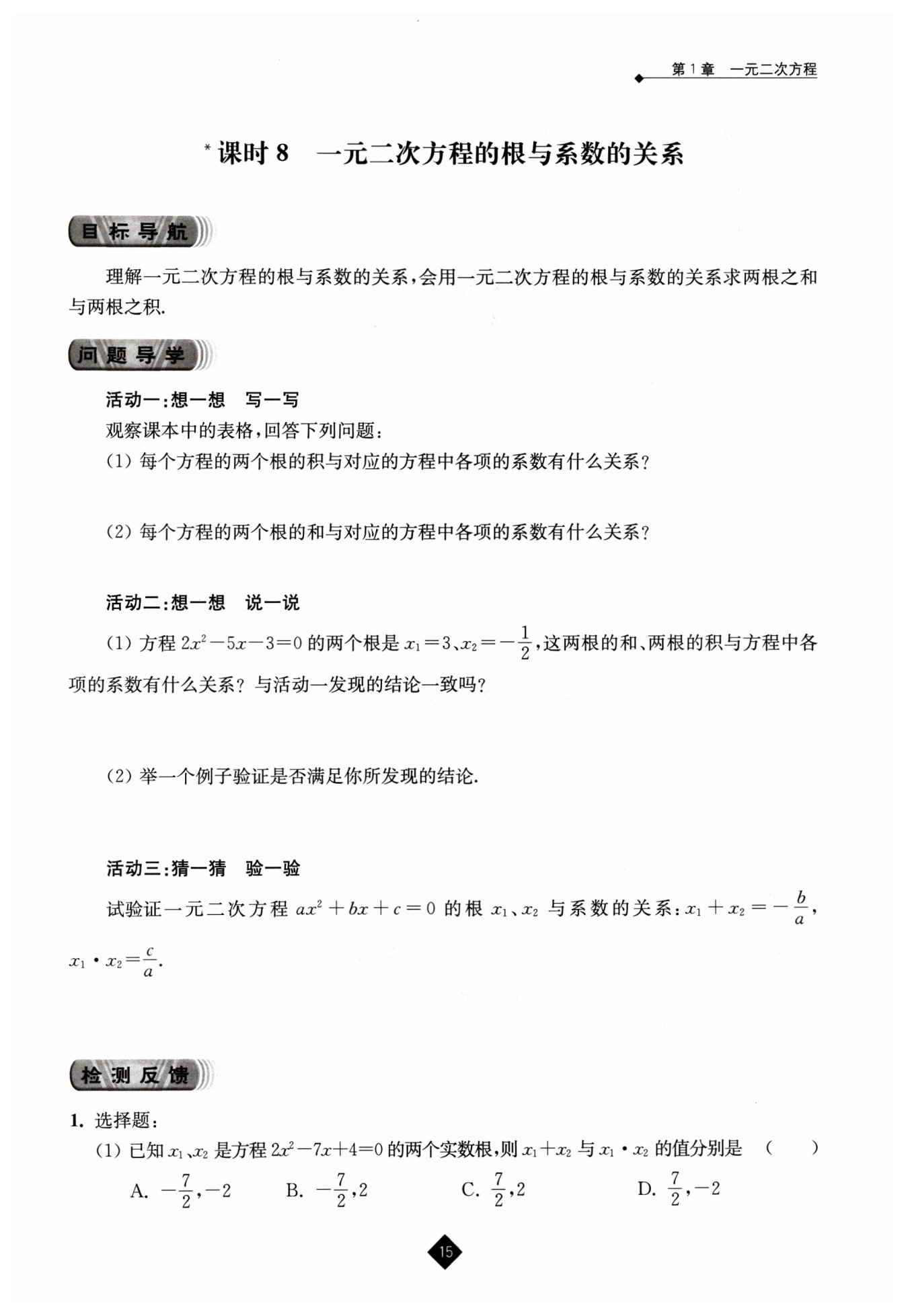 $綜上,一元二次方程ax^{2}+bx + c = 0(a\neq0)的根x_{1}、x_{2}滿足x_{1}+x_{2}=-\frac{a},x_{1}\cdot x_{2}=\frac{c}{a}。$
