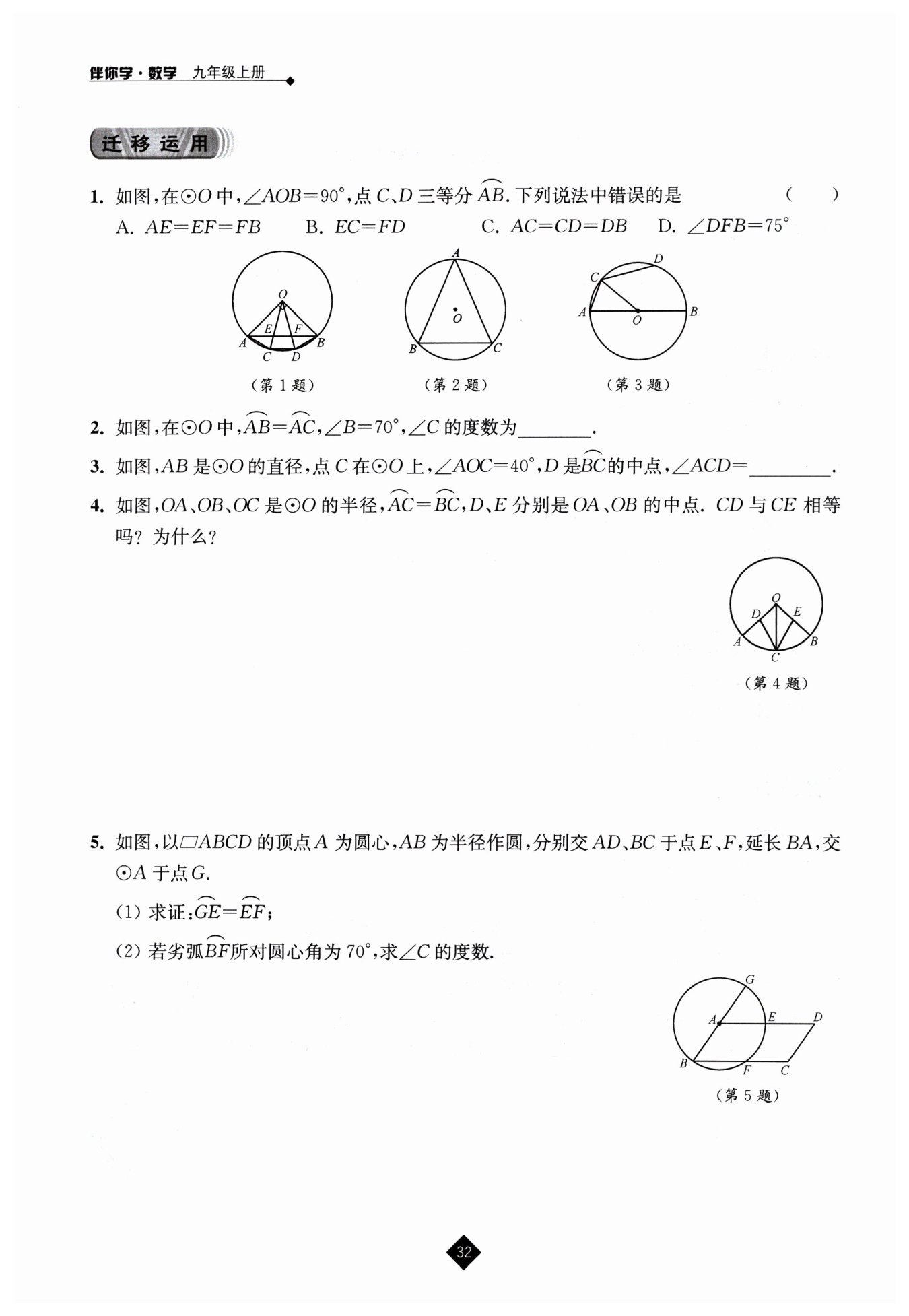 ∵∠AOB=90°,C、D三等分$\overset{\frown}{AB}$,∴$\angle AOC=\angle COD=\angle DOB=30^\circ$。