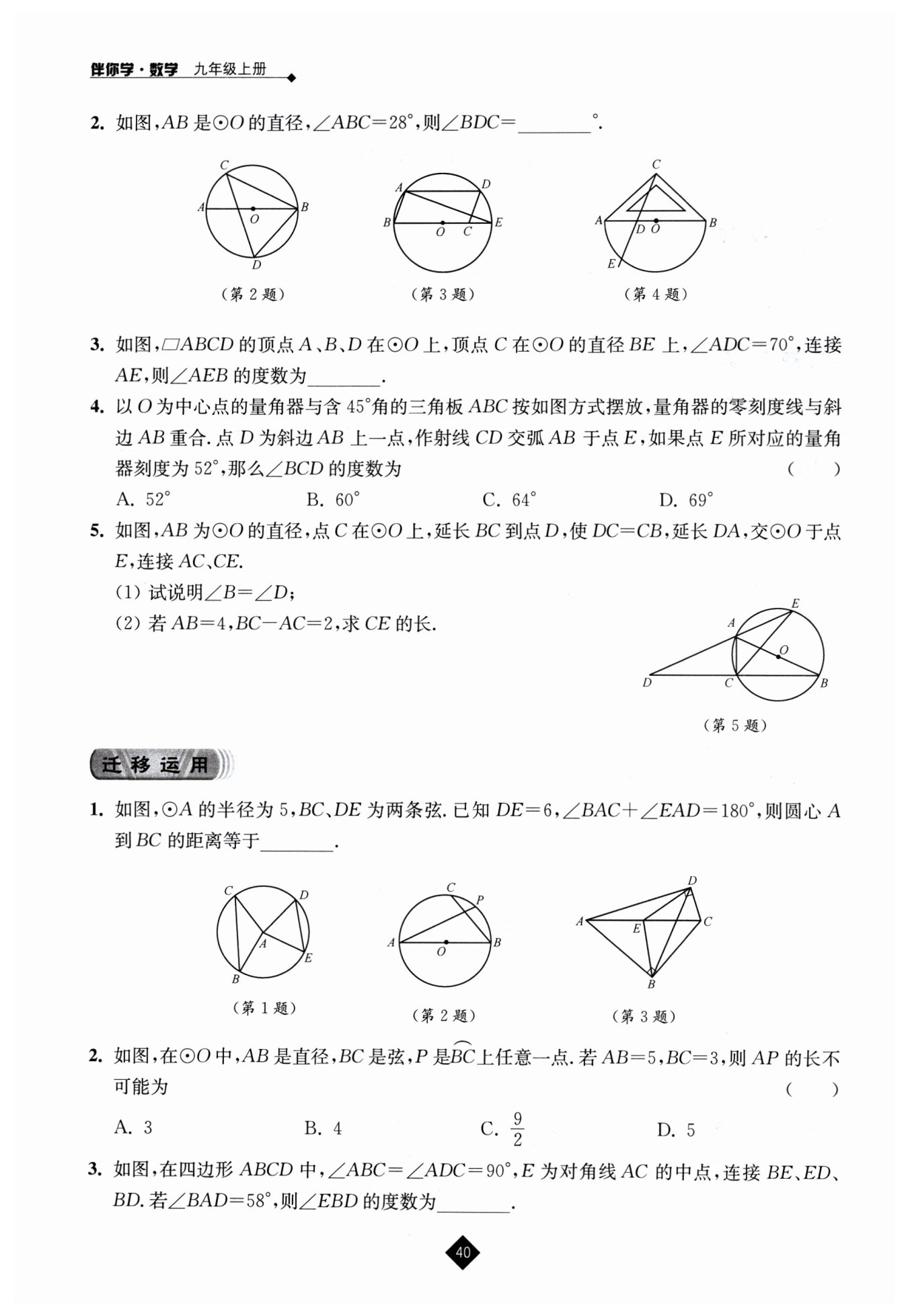 (1)∵AB是⊙O直徑,∴∠ACB=90°(直徑所對(duì)圓周角是直角)。