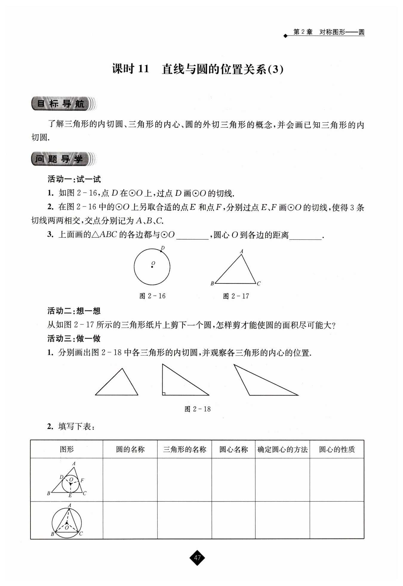 3. $\triangle ABC$的各邊都與$\odot O$相切,根據(jù)圓的切線性質(zhì),圓心到切線的距離等于圓的半徑,所以圓心$O$到各邊的距離相等。