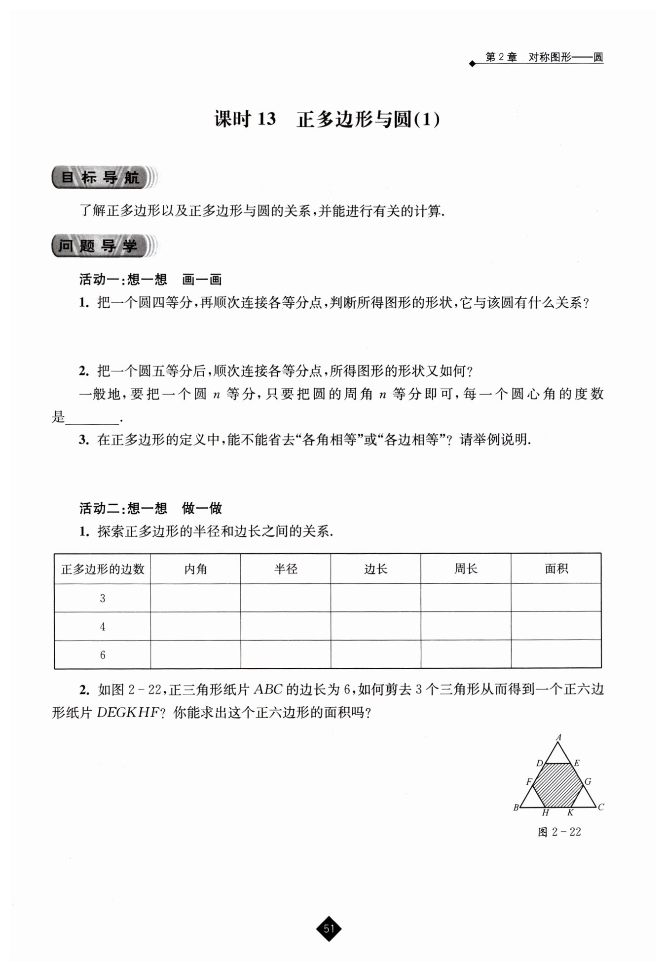 1. 在正三角形ABC的每條邊上,分別取距離兩端頂點均為2的兩點,連接這六個點,剪去三個頂點處的小正三角形(邊長為2),即可得到正六邊形DEG KHF。