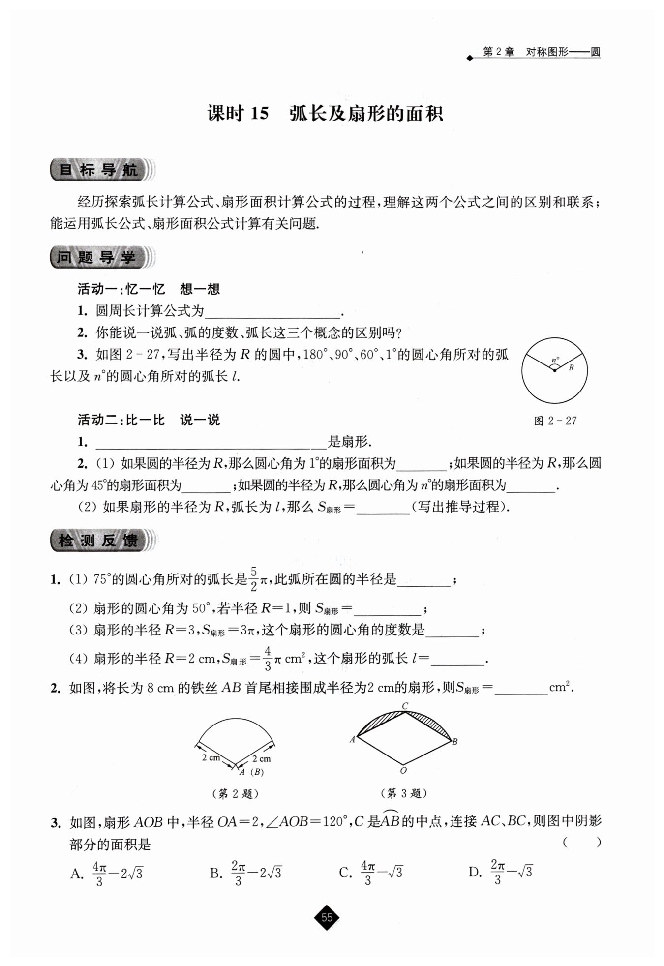 已知圓的周長(zhǎng)$C = 2\pi R$,設(shè)圓心角為$n^{\circ}$,弧長(zhǎng)公式為$l=\frac{n\pi R}{180}$,則$n=\frac{180l}{\pi R}$。