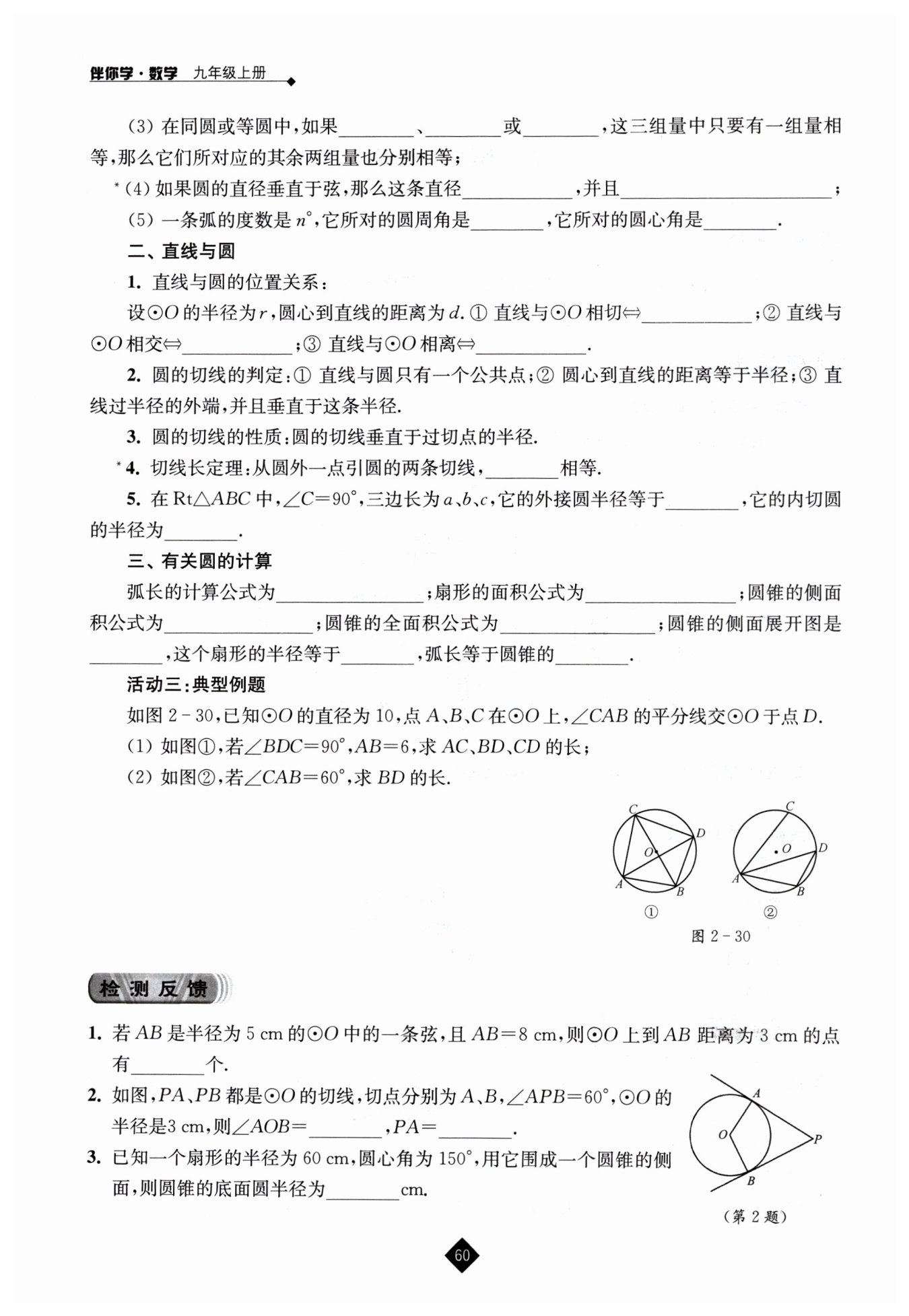 4. (2)直徑所在的直線;圓心;(3)圓心角相等;弧相等;弦相等;*(4)平分弦;平分弦所對的兩條??;(5)$\frac{n}{2}^{\circ}$;$n^{\circ}$