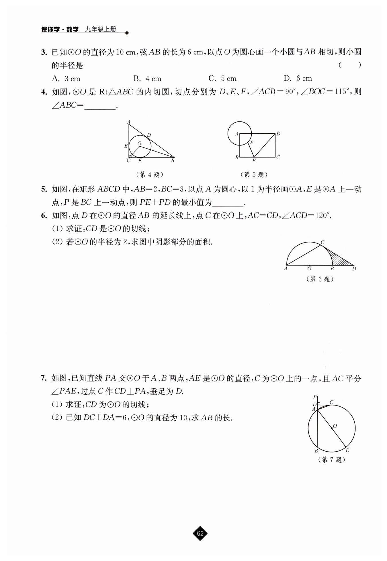 又因為 $OC$ 是 $\odot O$ 的半徑,所以 $CD$ 為 $\odot O$ 的切線。