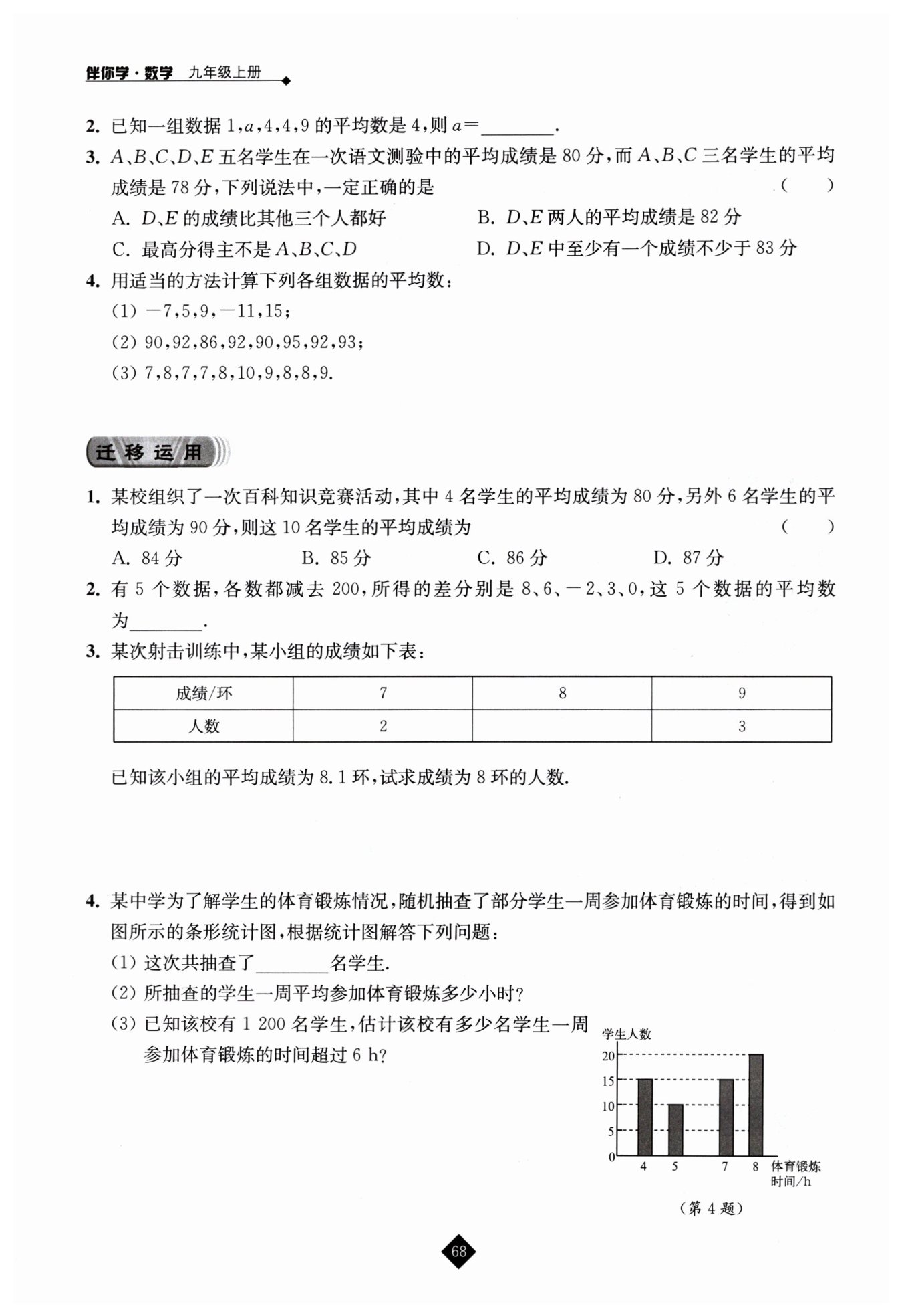 3. D、E兩名學(xué)生的總成績?yōu)?400 - 234 = 166$分,平均成績?yōu)?\frac{166}{2} = 83$分。