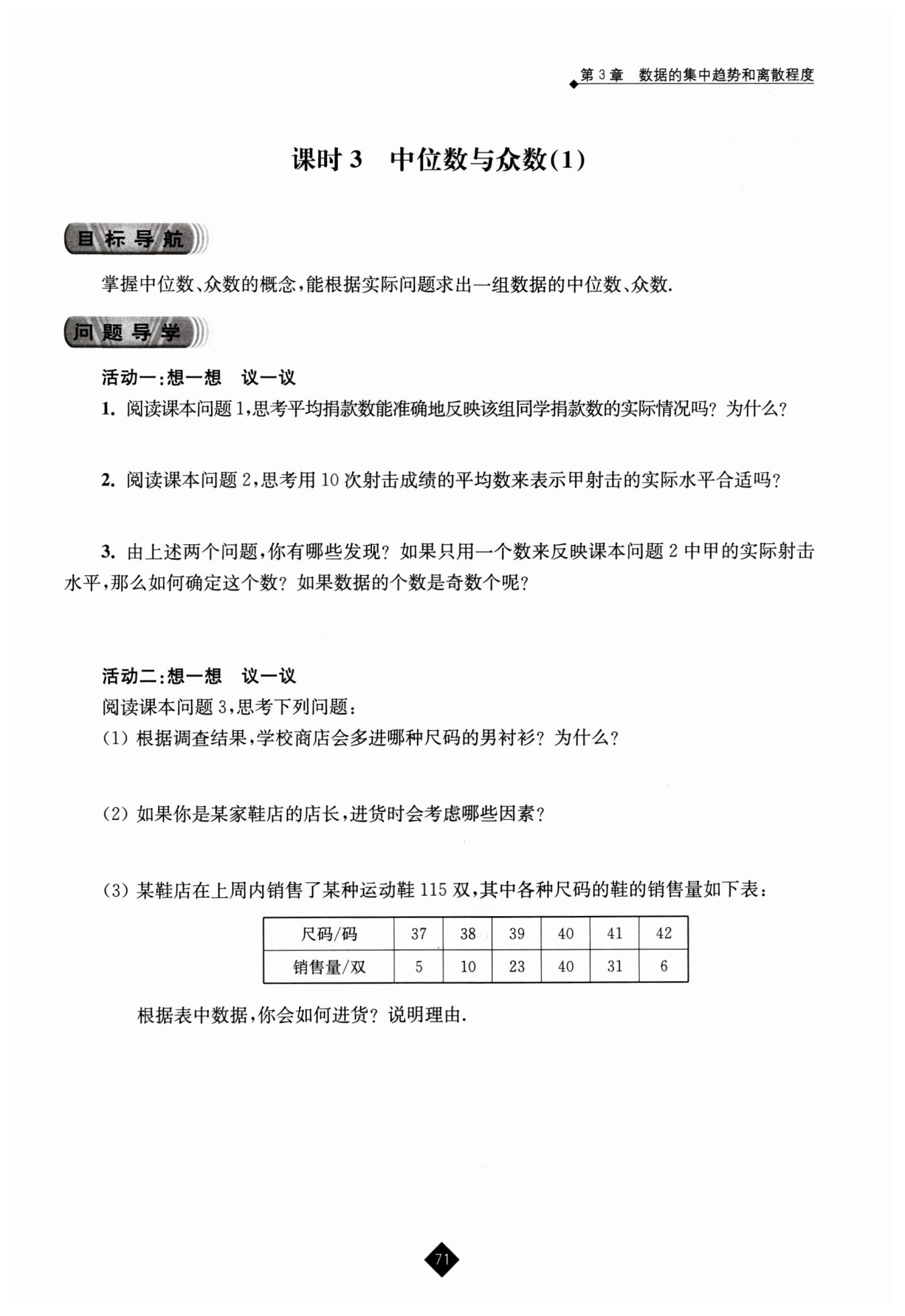 (3)根據(jù)表格,40碼銷售量最高(40雙),應(yīng)多進(jìn)40碼的運(yùn)動(dòng)鞋,其次39碼和41碼銷售量也較高,可適量進(jìn)貨。