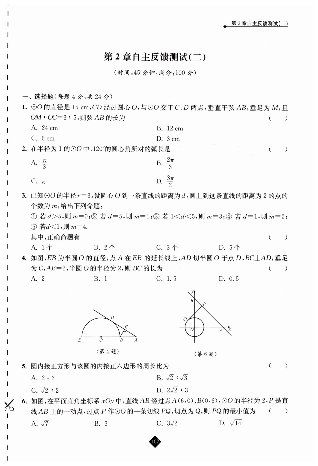 ∵$OM:OC=3:5$,∴$OM=\frac{3}{5}OC=\frac{3}{5}×7.5=4.5$cm。