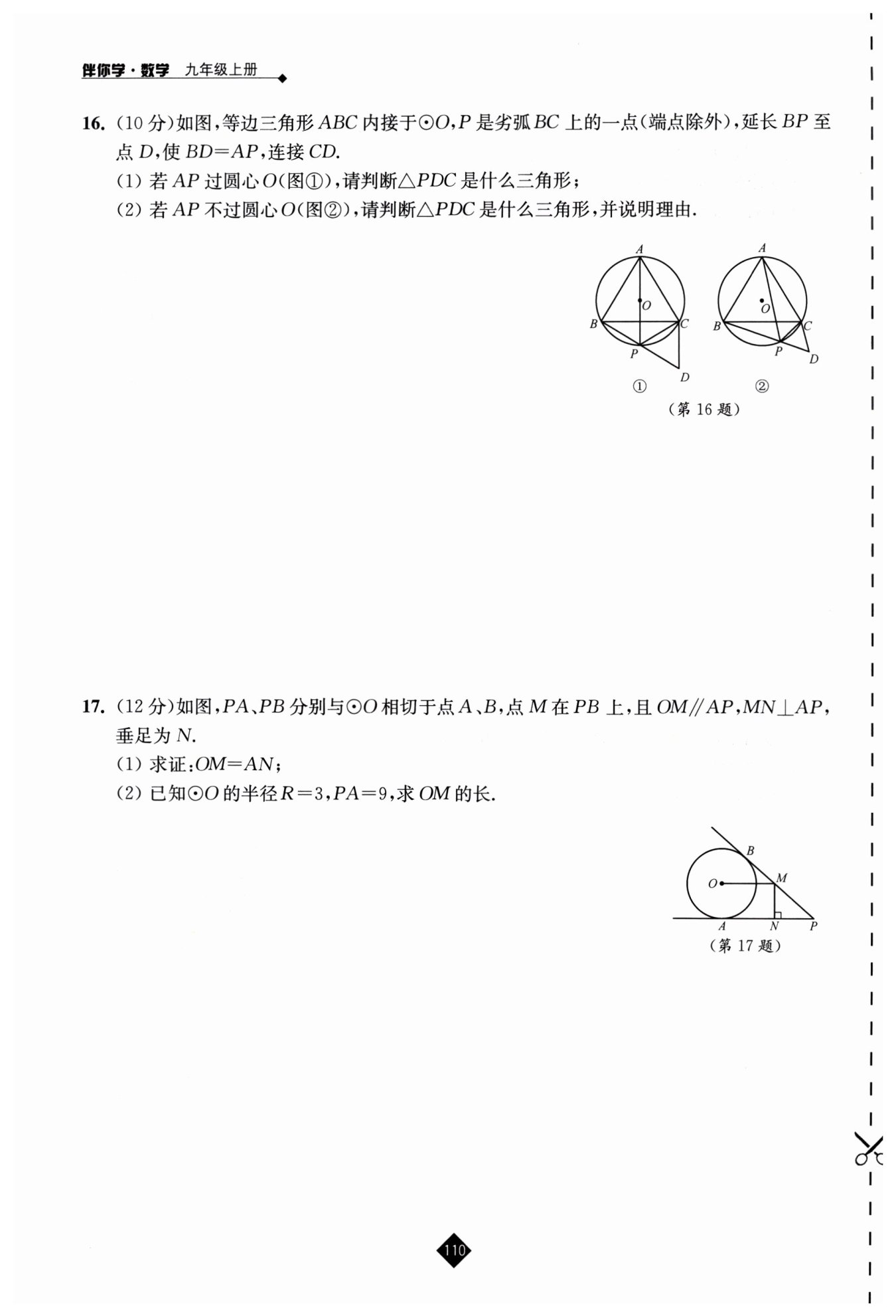∴ $ PA = PB = 9 ,$且 $ OP $ 平分 $ \angle APB $(切線長定理)。