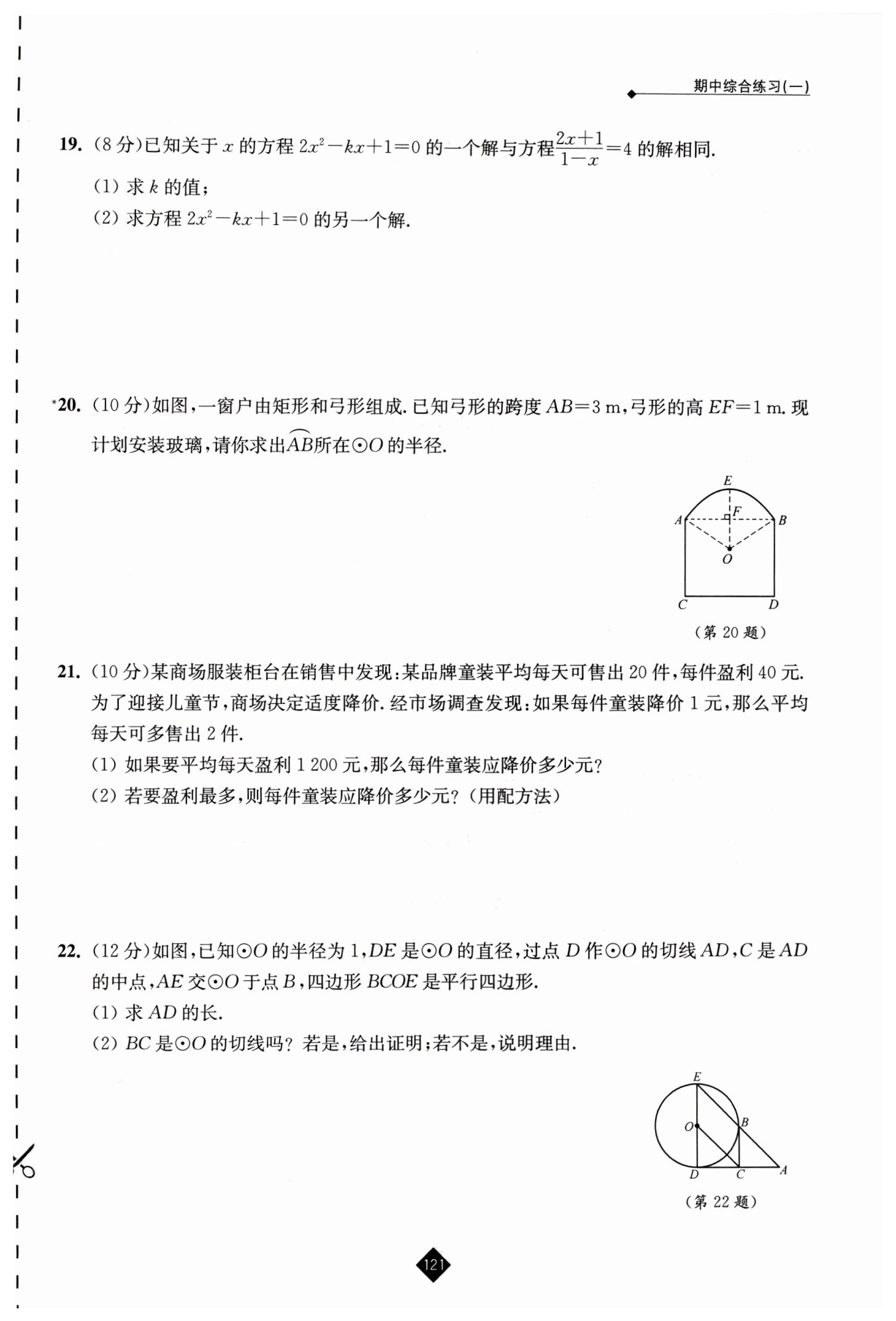 將 $ B(1,\frac{x}{2}) $ 代入⊙$ O $ 方程:$ (1-1)^2 + (\frac{x}{2})^2 = 1 $,解得 $ x = 2 $。