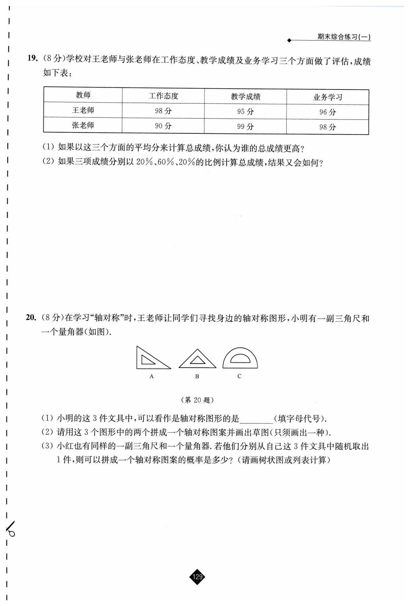 共有9種等可能結(jié)果,其中可拼成軸對稱圖案的有(A,A)、(B,B)、(B,C)、(C,B)、(C,C)共5種,概率為$\frac{5}{9}$。