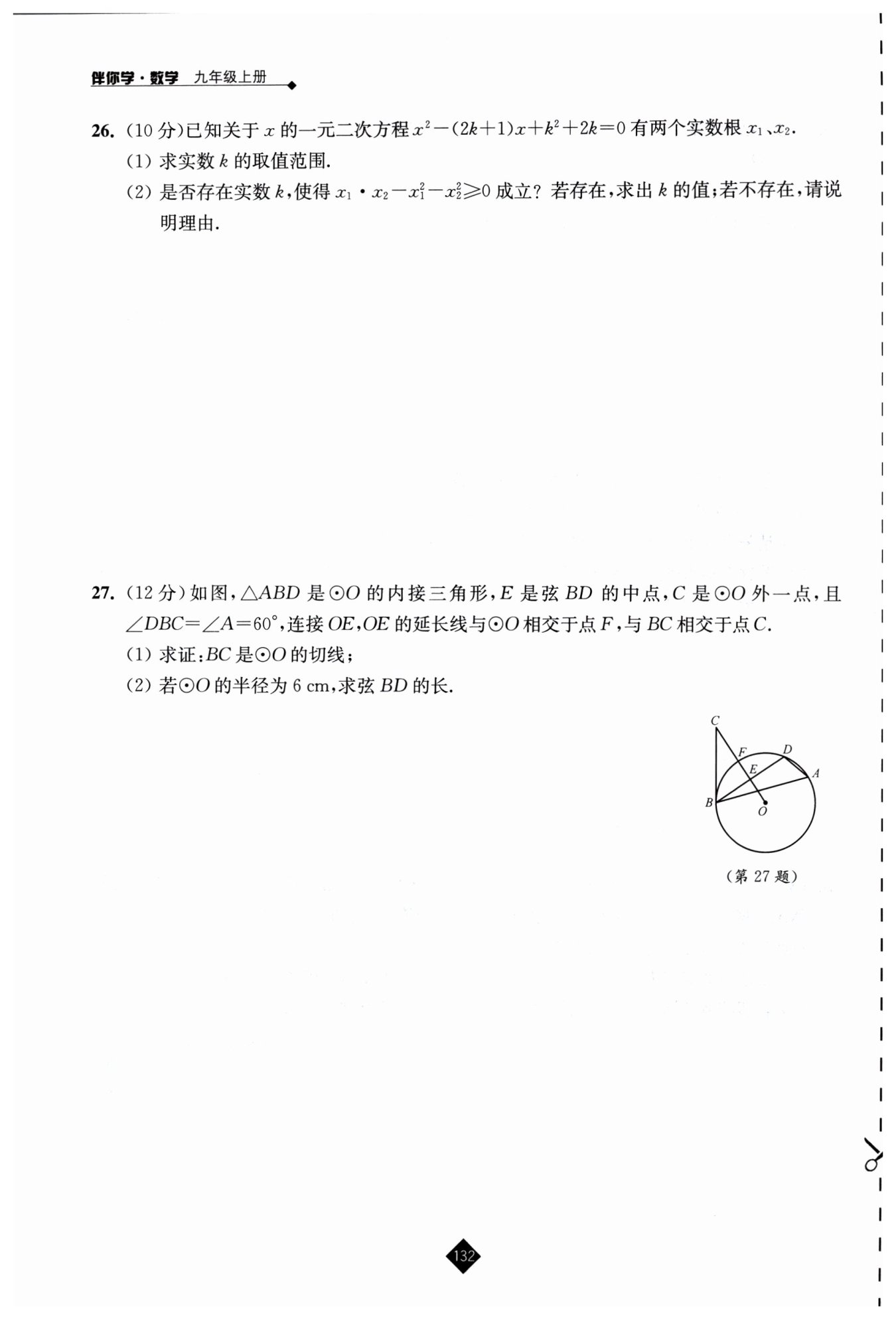 因?yàn)?$ E $ 是弦 $ BD $ 的中點(diǎn),$ O $ 是圓心,所以 $ OE \perp BD ,$即 $ \angle OEB = 90^\circ 。$
