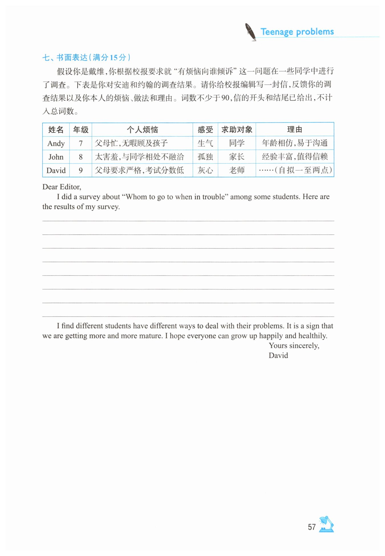marks in exams. I usually talk to my teachers. They are understanding and helpful.