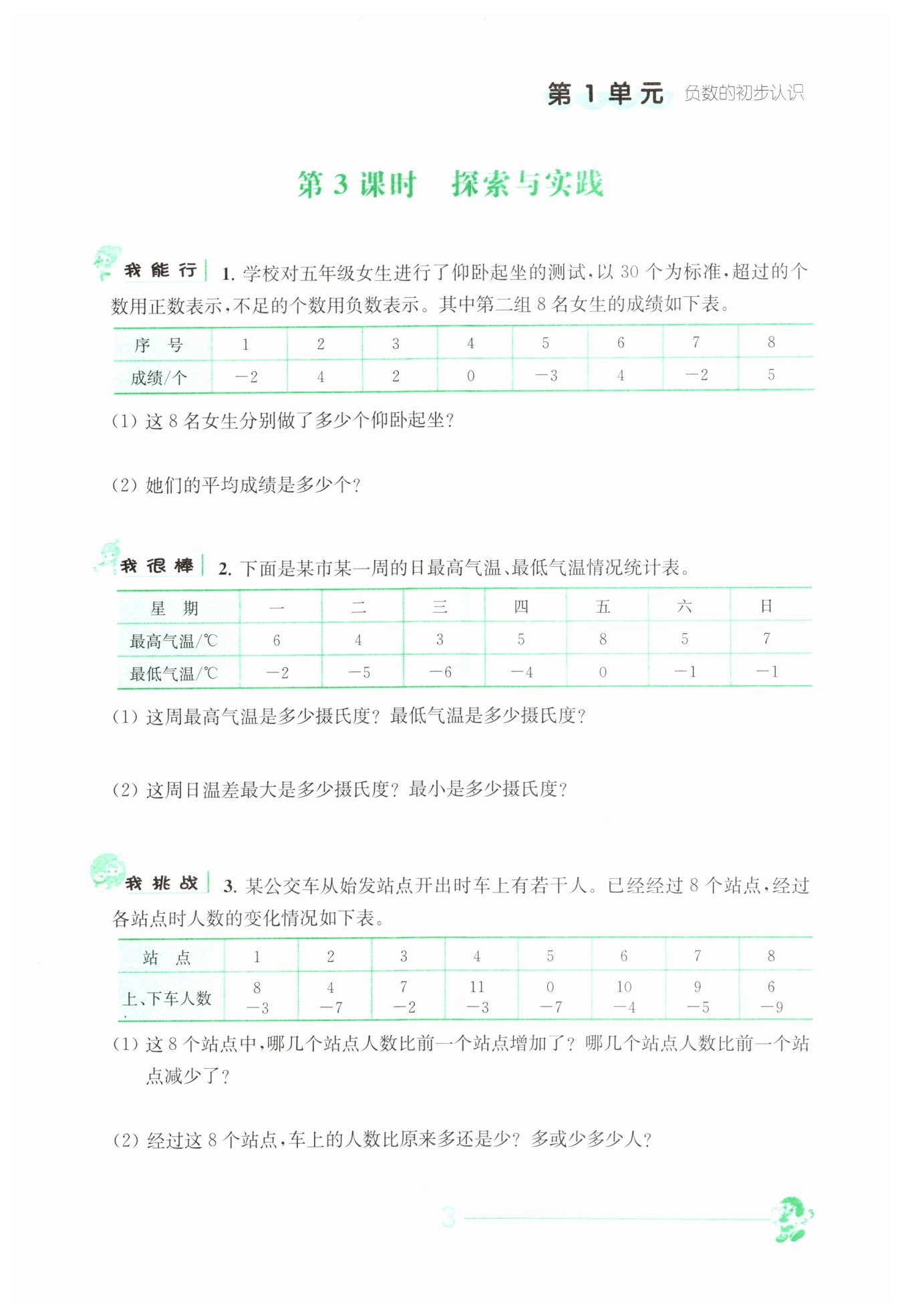 (2) 總變化量 = 5 + (-3) + 5 + 8 + (-7) + 6 + 4 + (-3) = 15。