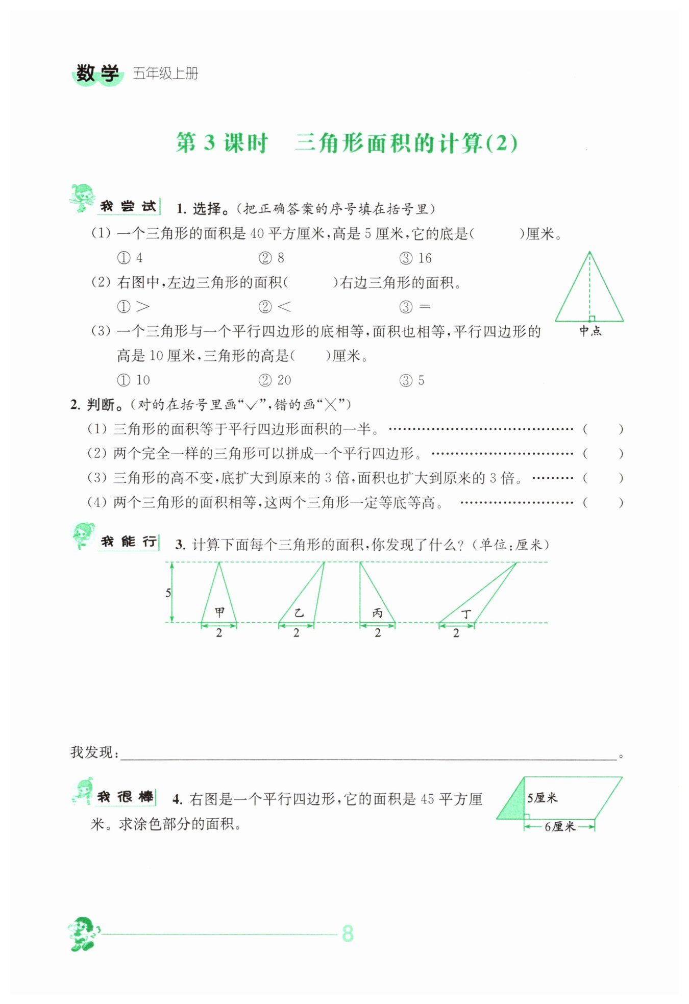 (1) 三角形面積公式為:面積 = (底 × 高) ÷ 2