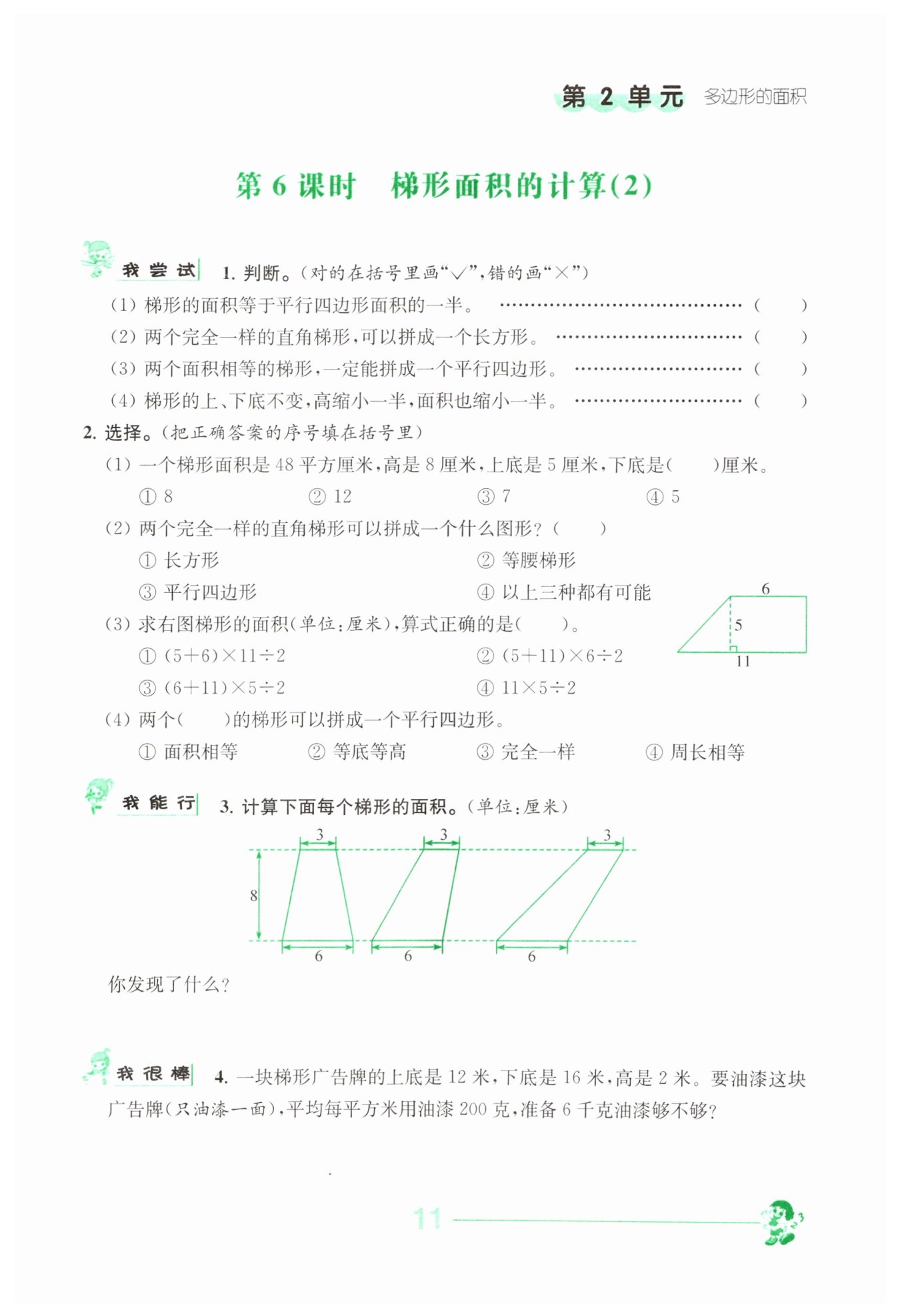 (3) 兩個(gè)面積相等的梯形,并不意味著它們的形狀完全相同,因此不一定能拼成一個(gè)平行四邊形。這是錯(cuò)誤的。