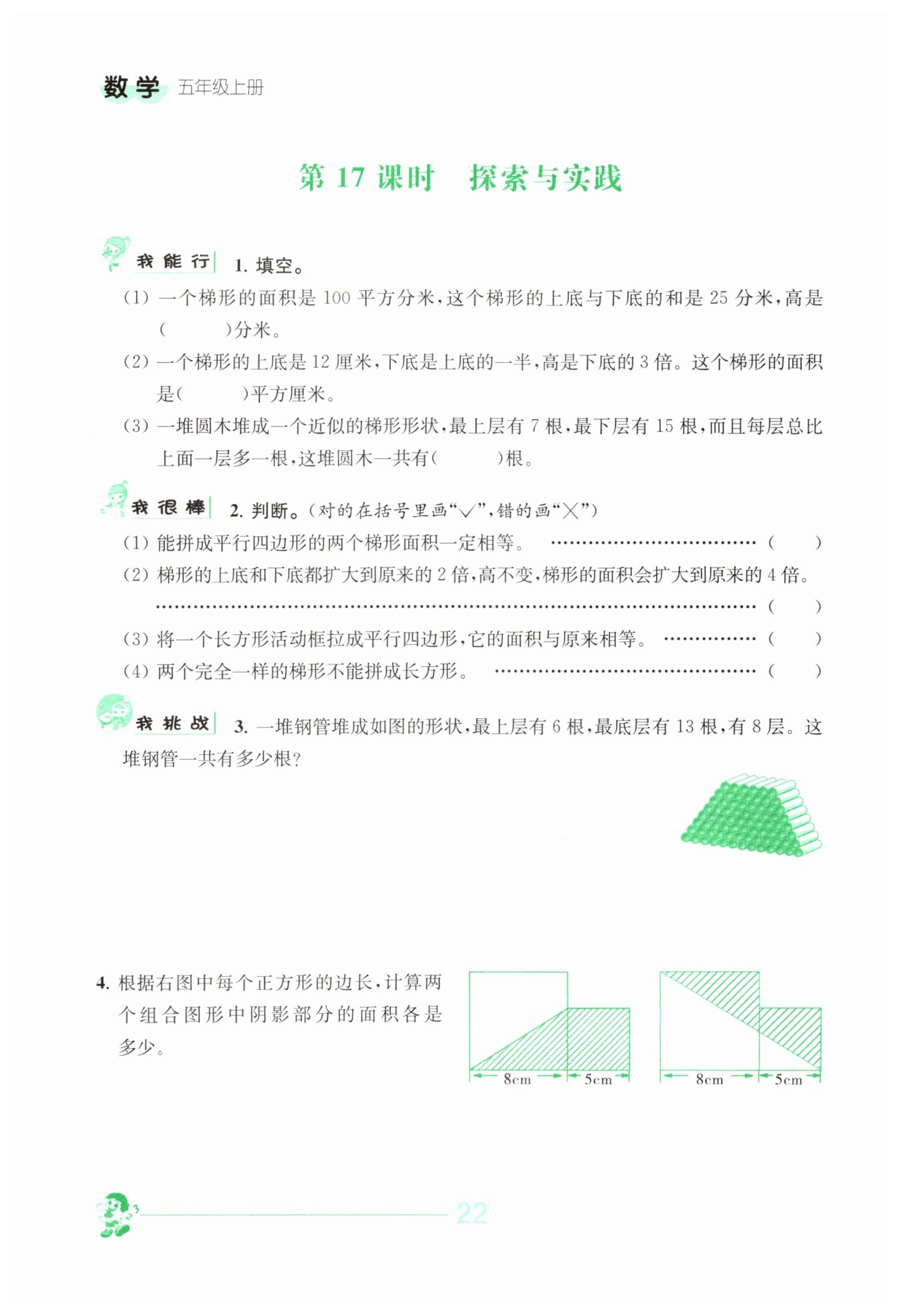 (1) 根據(jù)梯形面積公式 $S = \frac{(a+b) × h}{2}$,