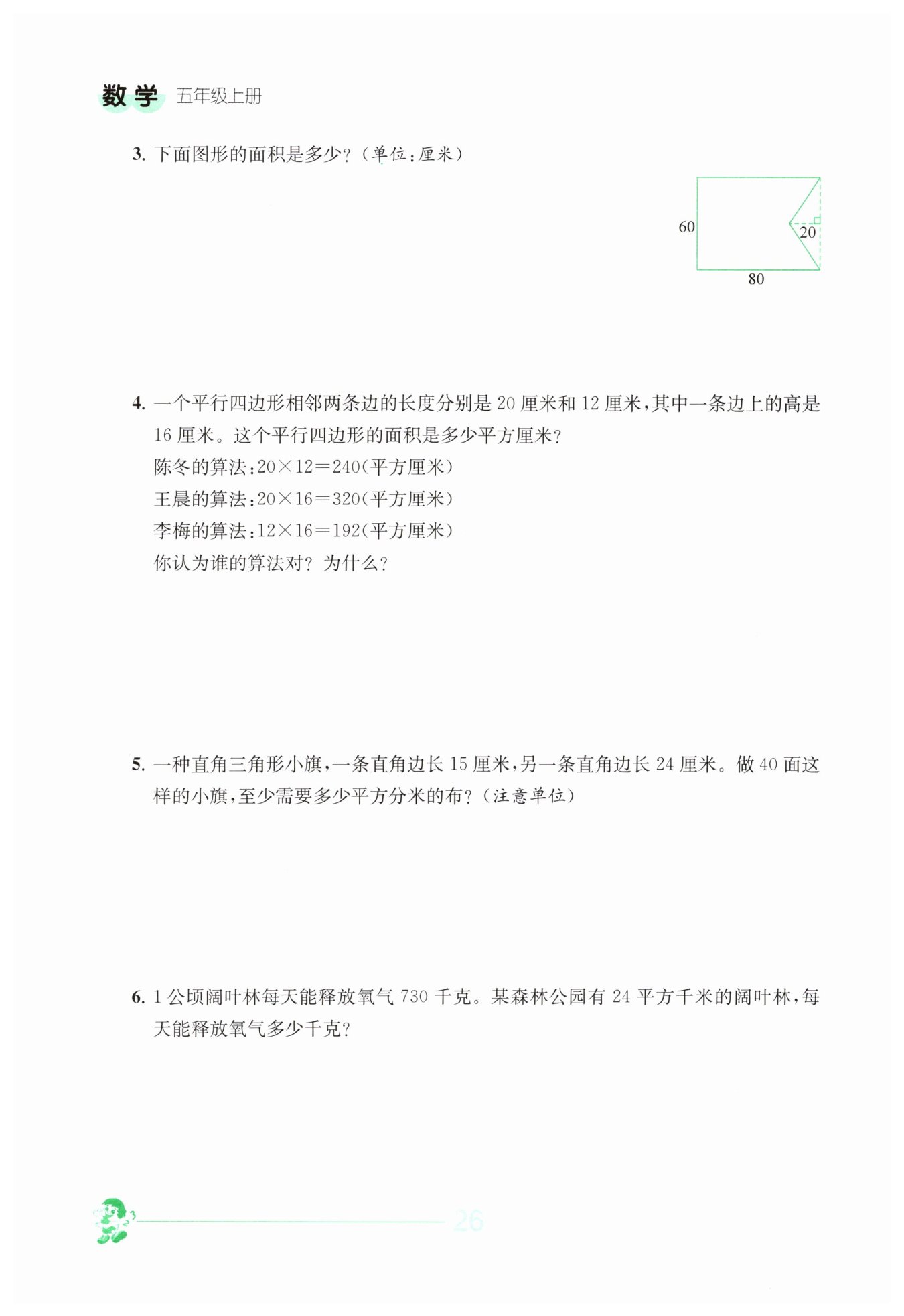 60×80 - 60×20÷2 = 4200(平方厘米)