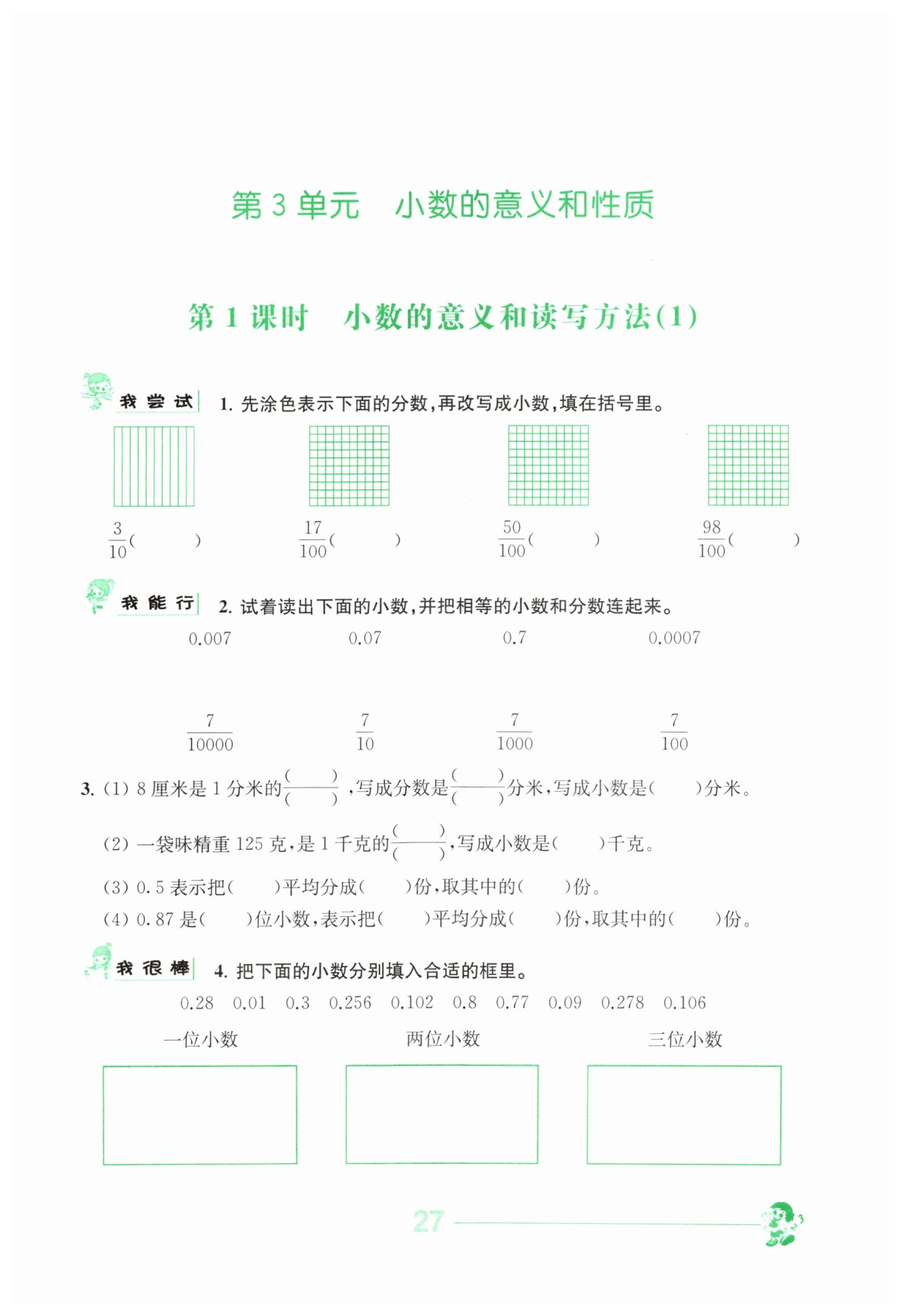 (3) 0.5是一位小數(shù),表示把1平均分成10份,取其中5份