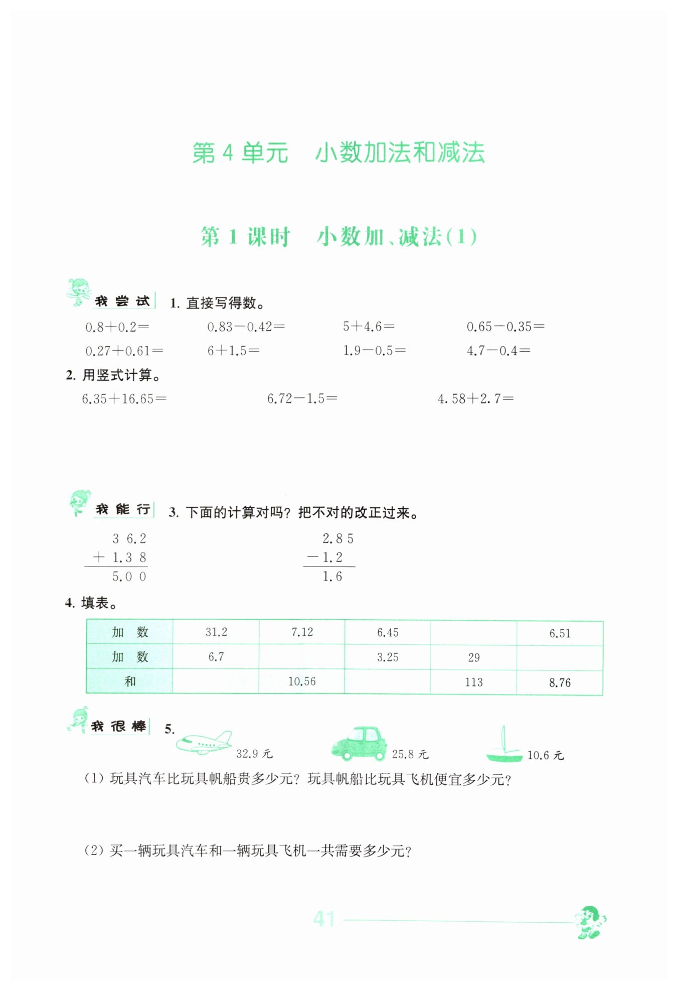 第一列:已知兩個(gè)加數(shù)分別為$31.2$和$6.7$,則它們的和為$31.2 + 6.7 = 37.9$。