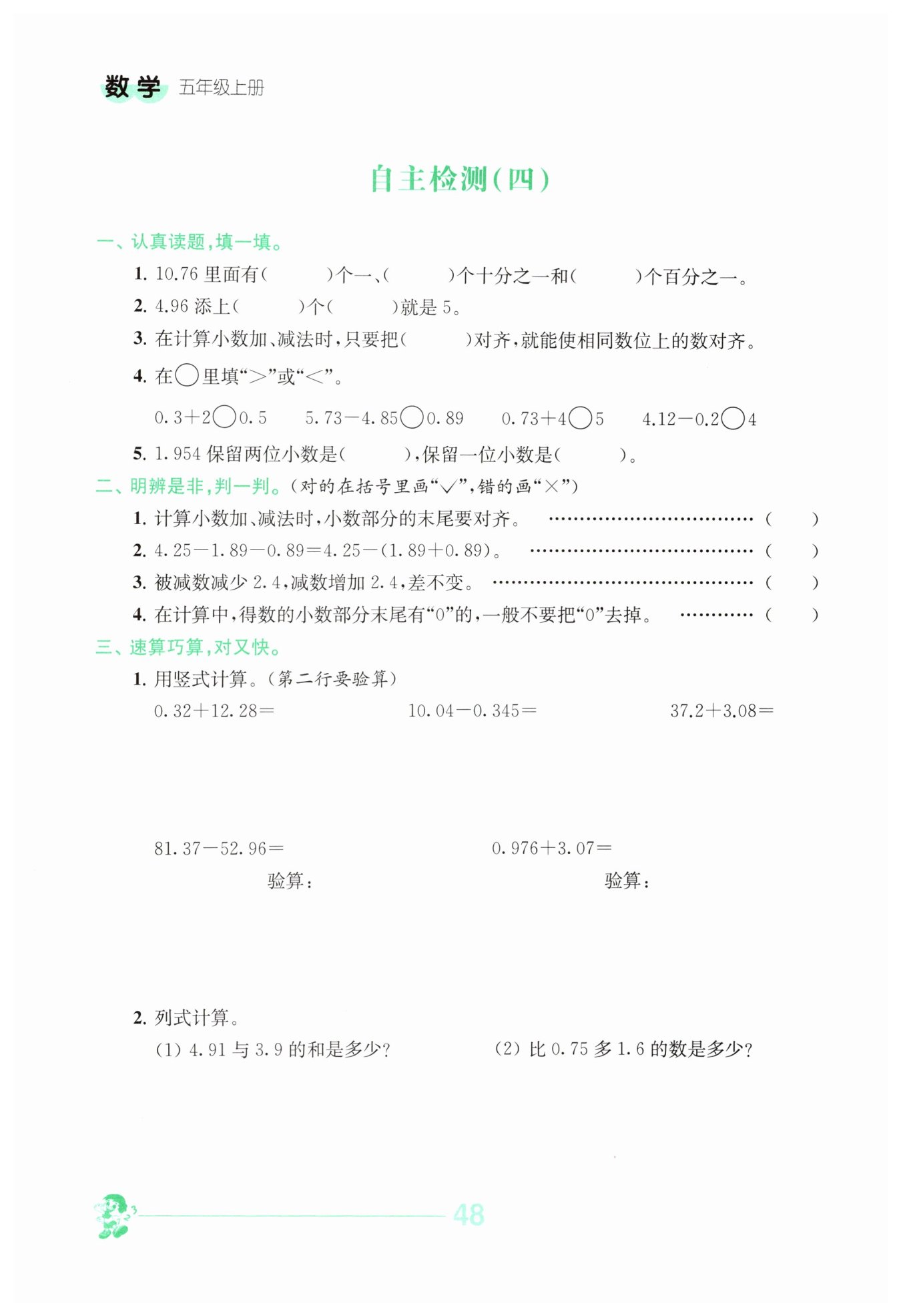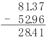 2. 對于$5.73 - 4.85$與$0.89$,計(jì)算$5.73 - 4.85 = 0.88$,因?yàn)?0.88<0.89$,所以$5.73 - 4.85<0.89$。