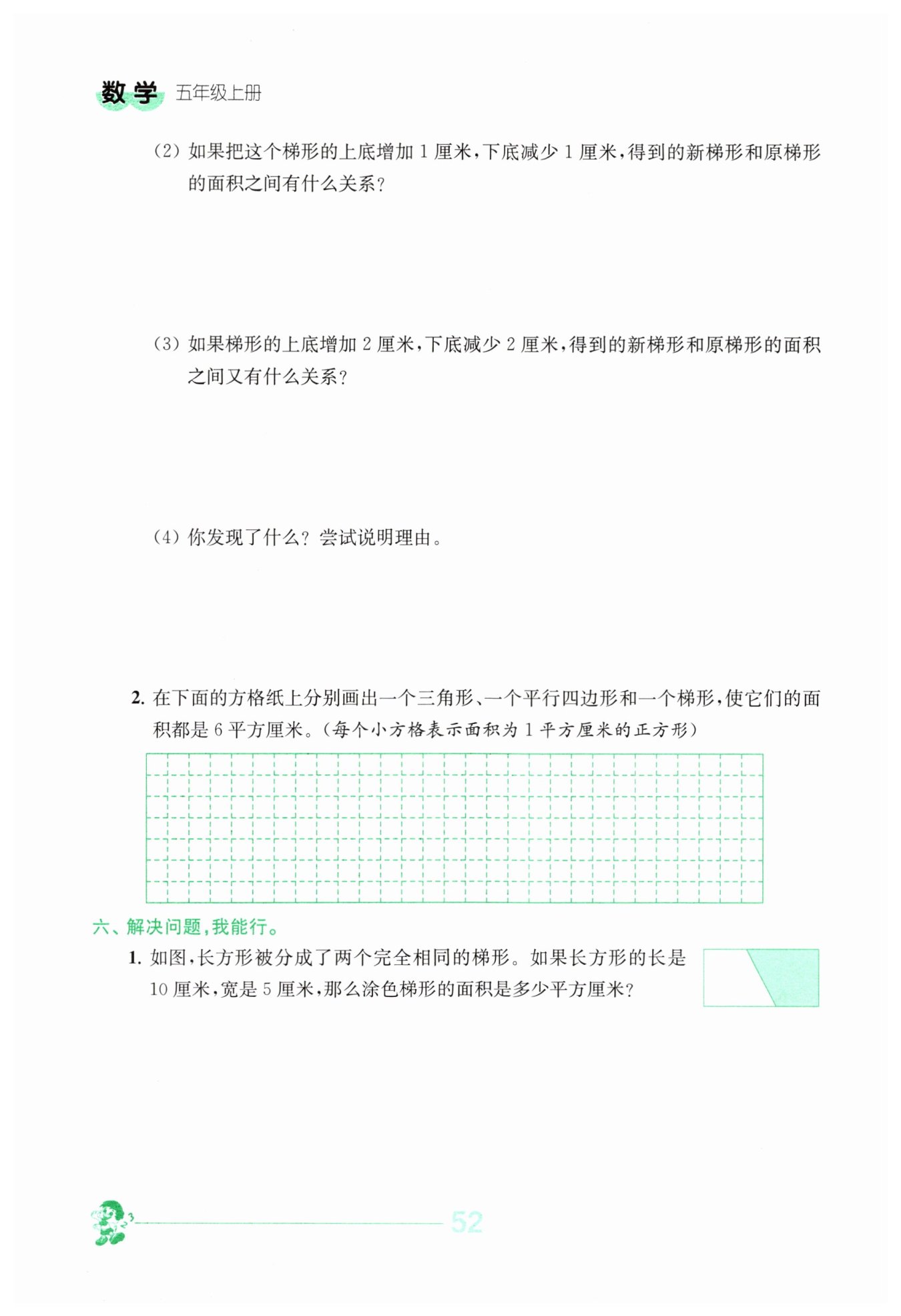 答:發(fā)現(xiàn)梯形的上底增加的長(zhǎng)度與下底減少的長(zhǎng)度相同,