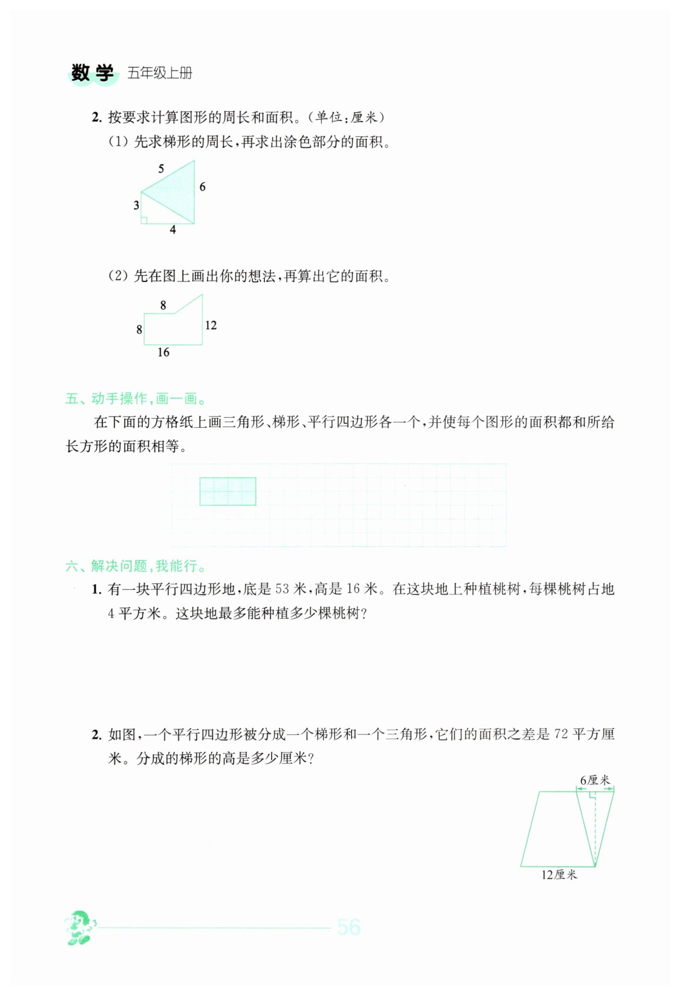 答:梯形的周長(zhǎng)是18厘米,涂色部分的面積是12平方厘米。