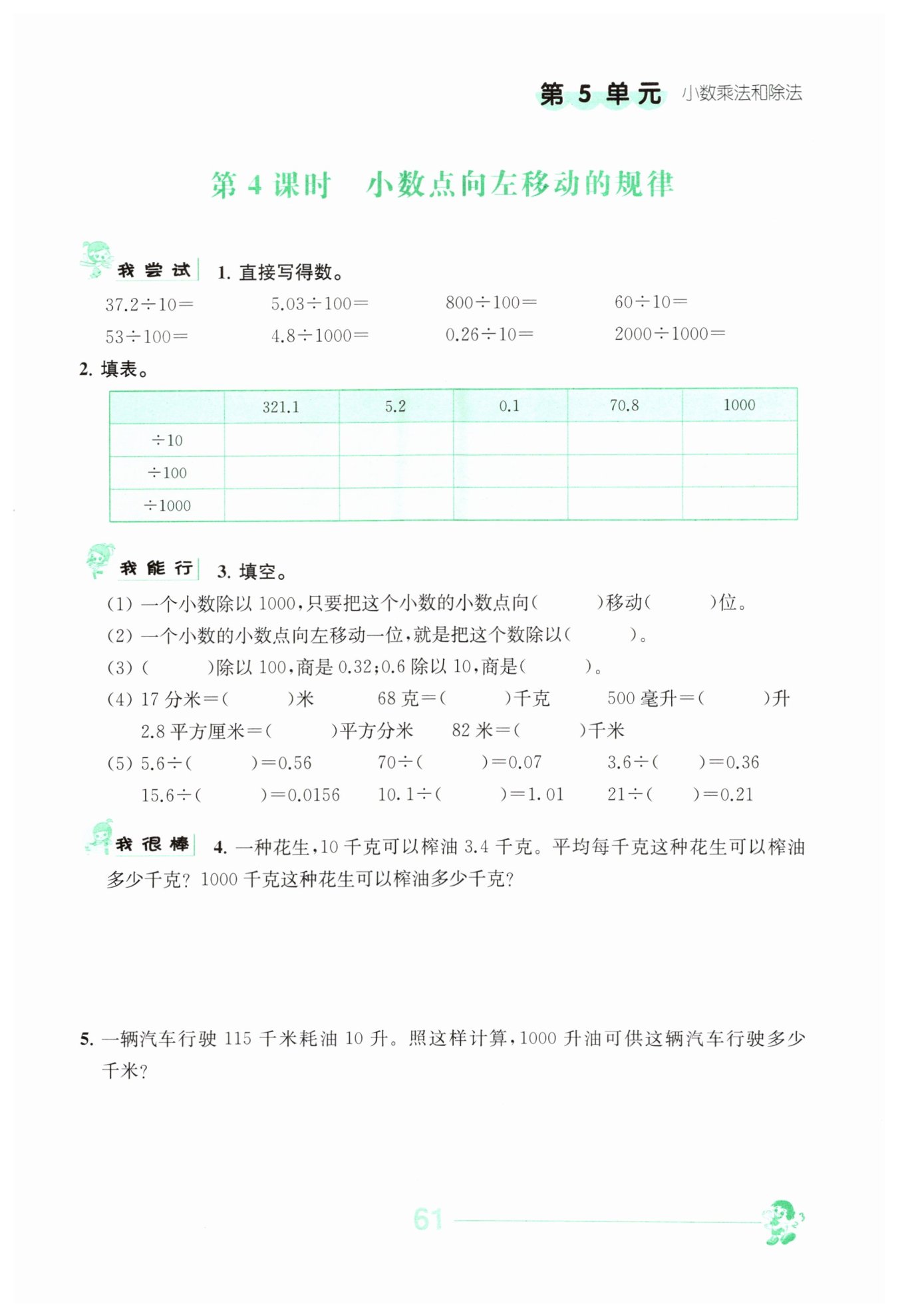 (4)17÷10=1.7;68÷1000=0.068;500÷1000=0.5;2.8÷100=0.028;82÷1000=0.082。