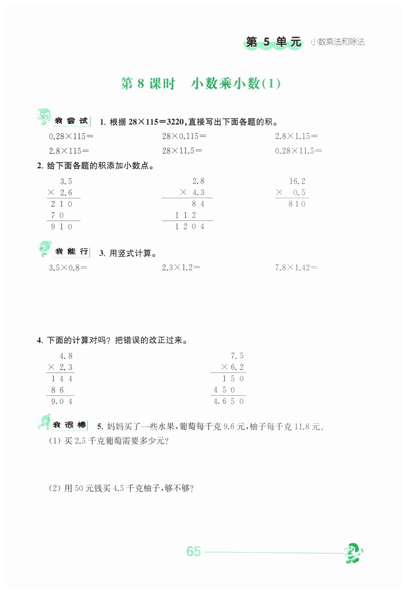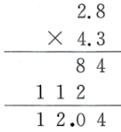 $28×0.115$:115縮小到原來(lái)的$\frac{1}{1000}$變?yōu)?.115,28不變,積3220縮小到原來(lái)的$\frac{1}{1000}$,得$3.22$。
