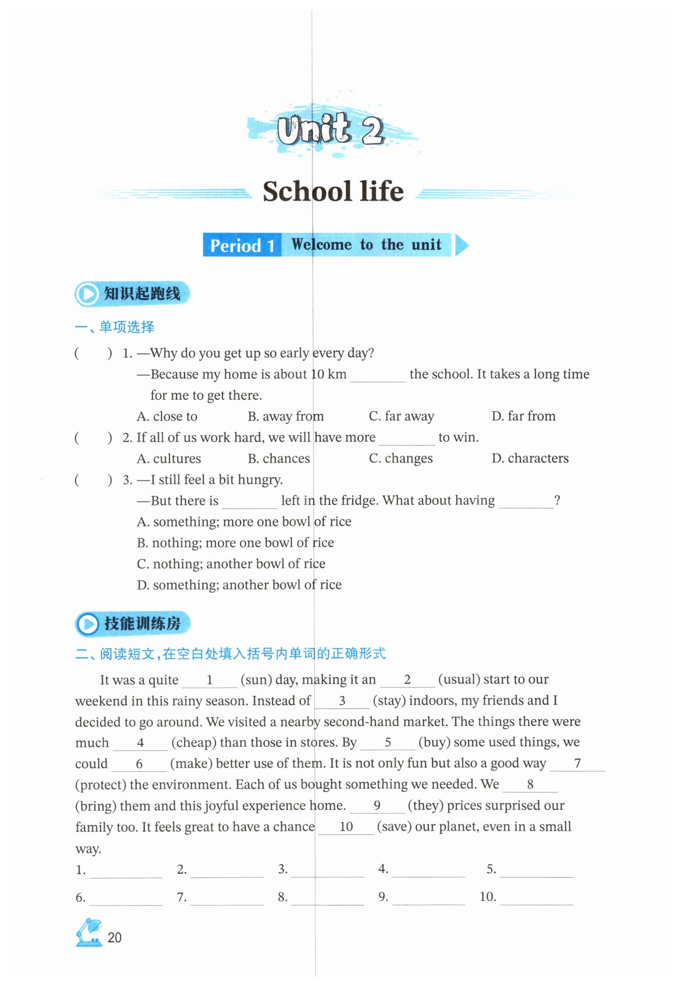 1. sunny 2. unusual 3. staying 4. cheaper 5. buying 6. make 7. to protect 8. brought 9. Their 10. to save
