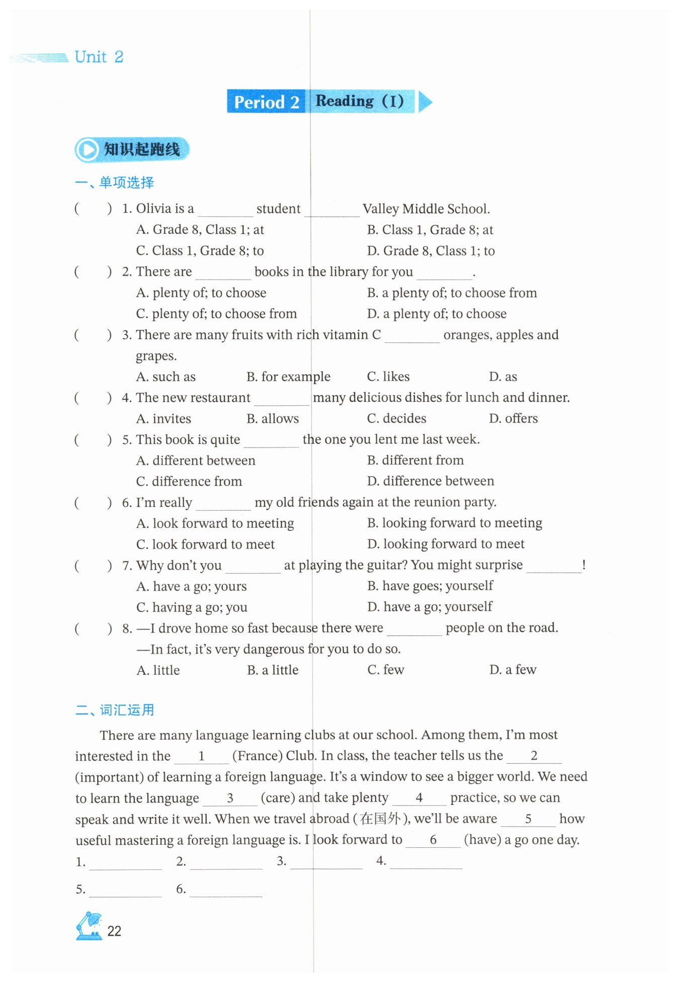1. French 2. importance 3. carefully 4. of 5. of 6. having