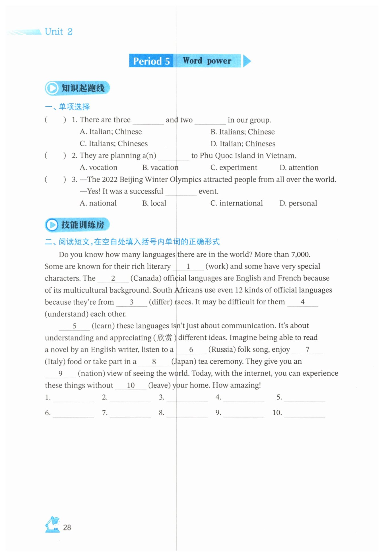 1. works 2. Canadian 3. different 4. to understand 5. Learning 6. Russian 7. Italian 8. Japanese 9. international 10. leaving
