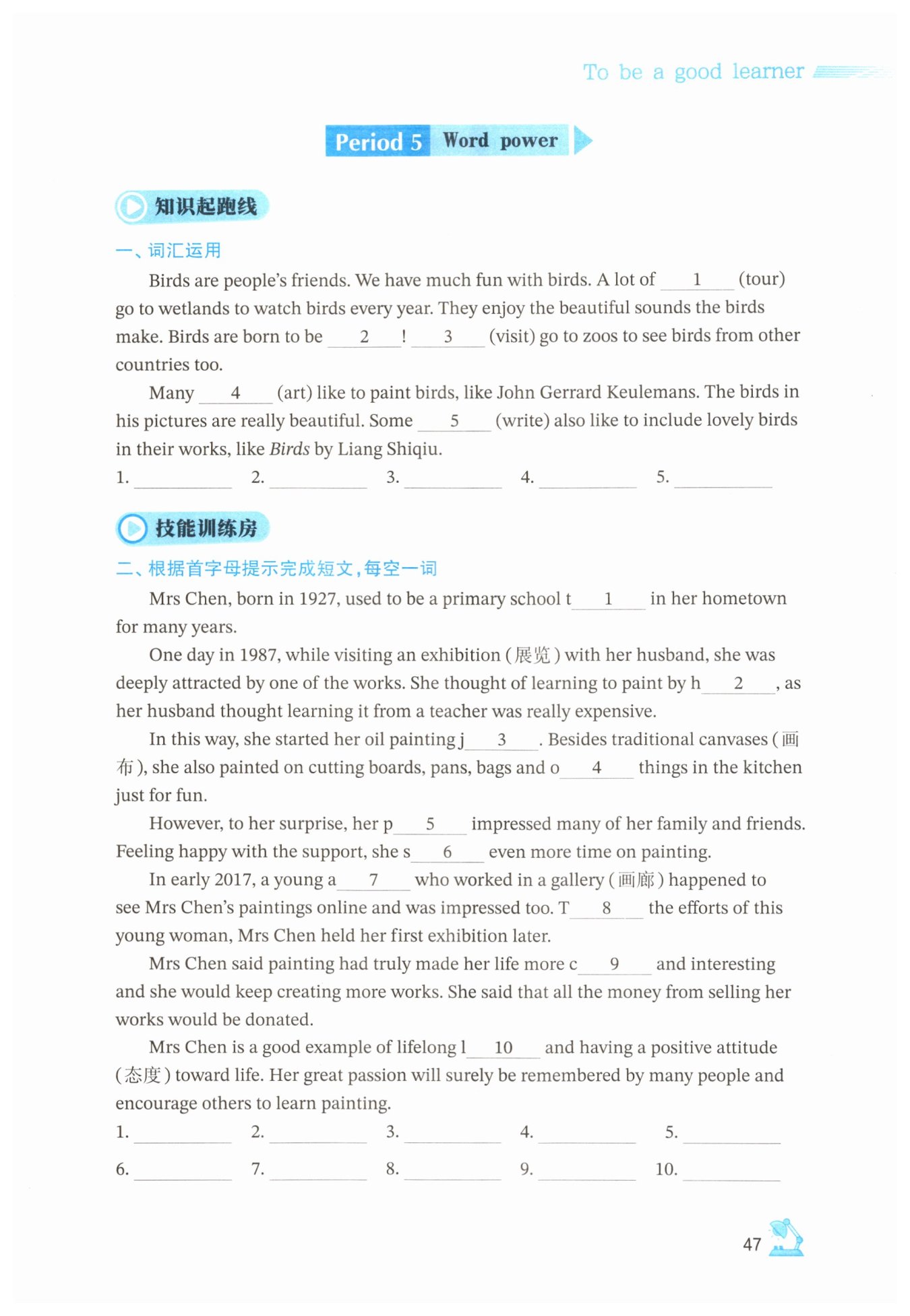 1. teacher 2. herself 3. journey 4. other 5. paintings 6. spent 7. artist 8. Through 9. colourful 10. learning