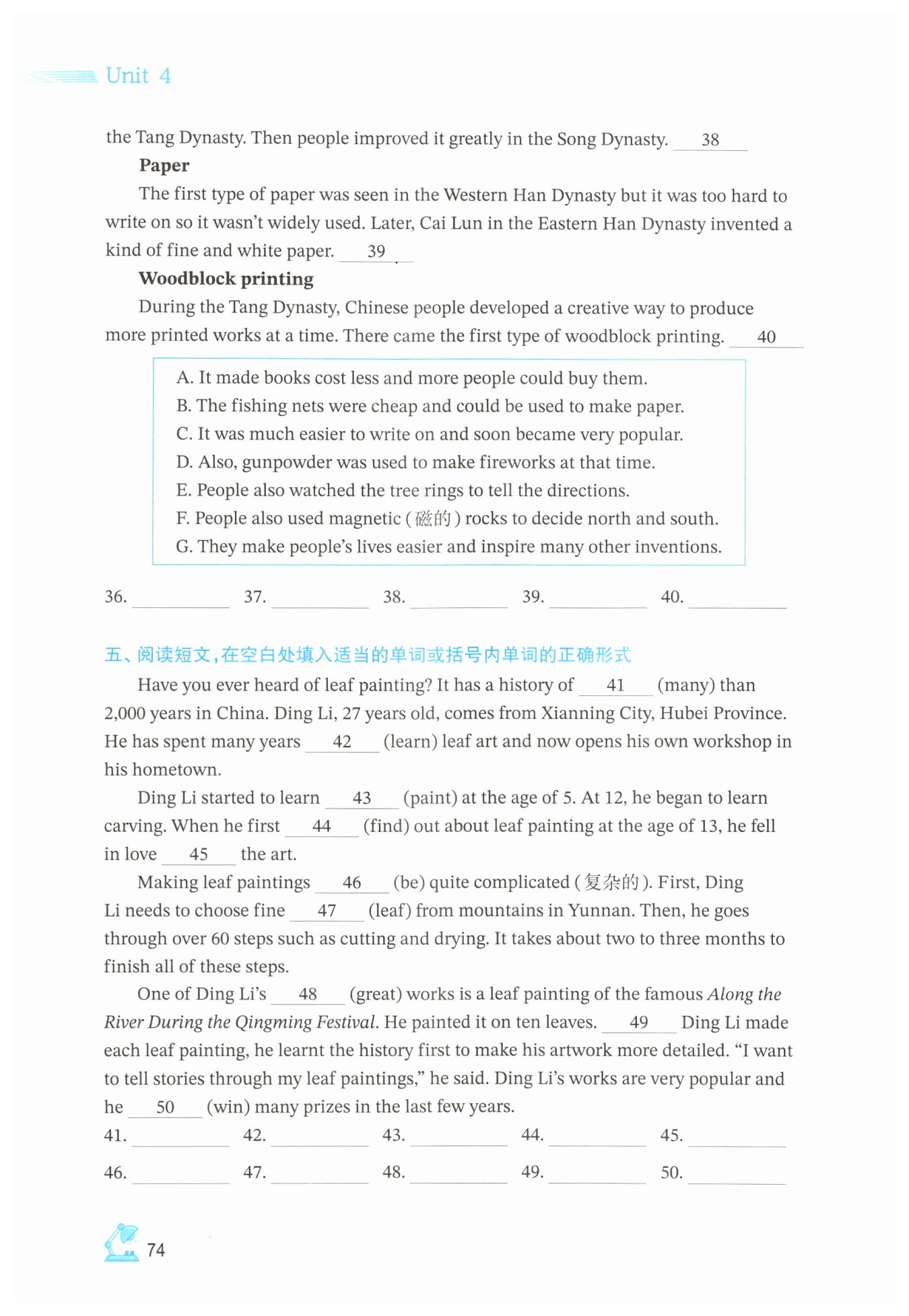 41.more 42.learning 43.painting 44.found 45.with 46.is 47.leaves 48.greatest 49.Before 50.won
