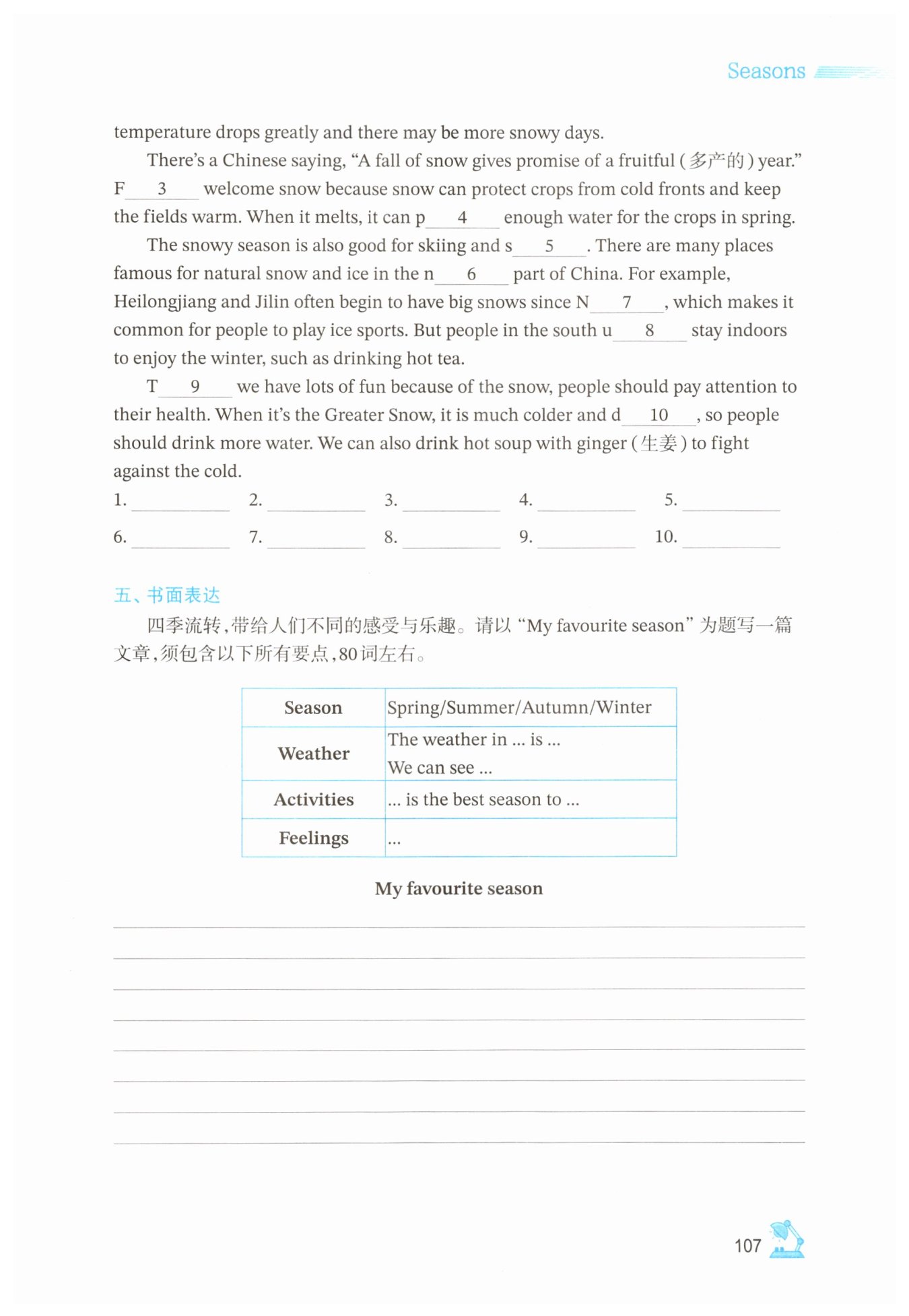Spring is my favourite season. The weather in spring is often sunny. The temperature is higher