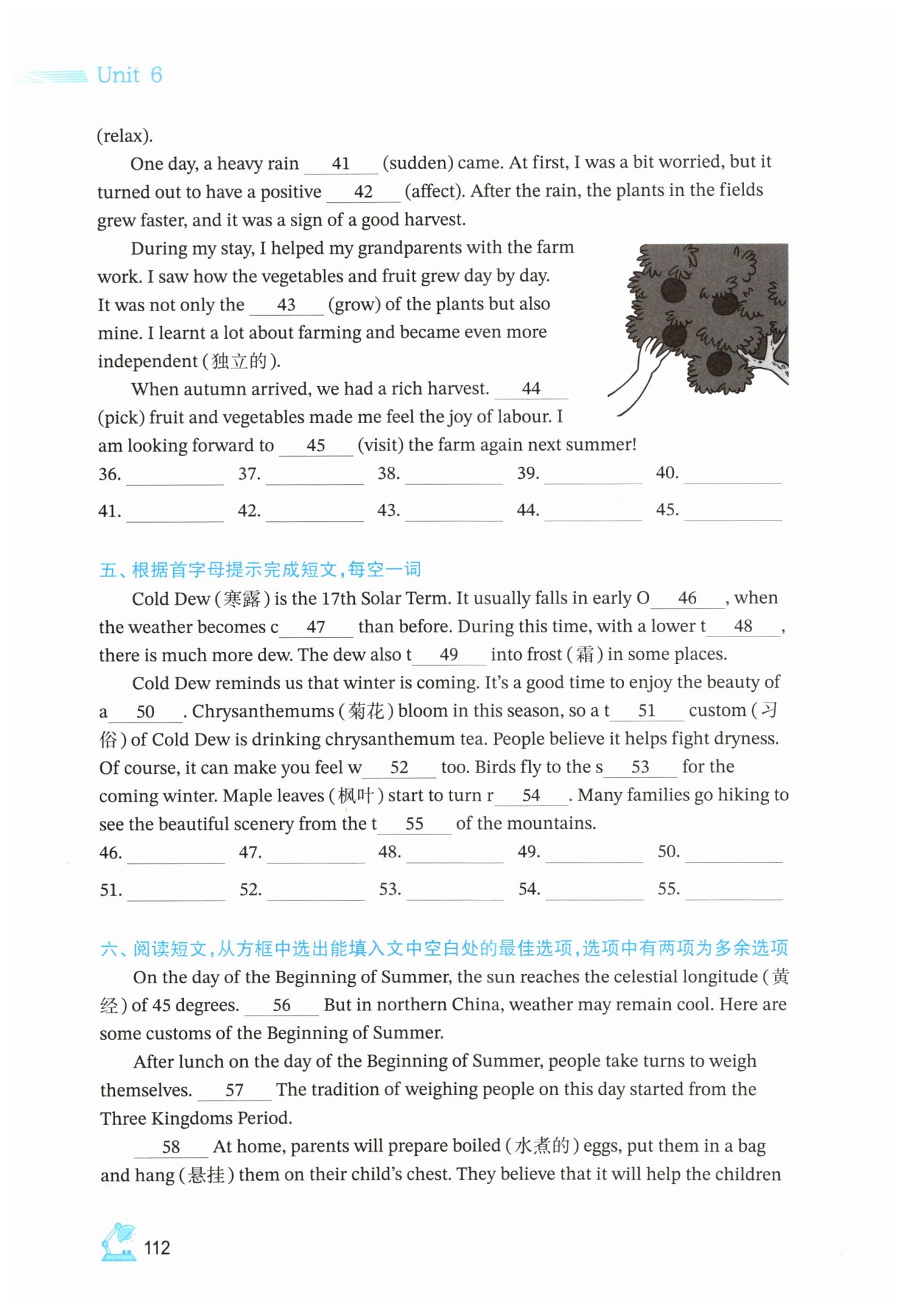 36. pleasant 37. grandparents' 38. degrees 39. having 40. relaxed 41. suddenly 42. effect 43. growth 44. Picking 45. visiting