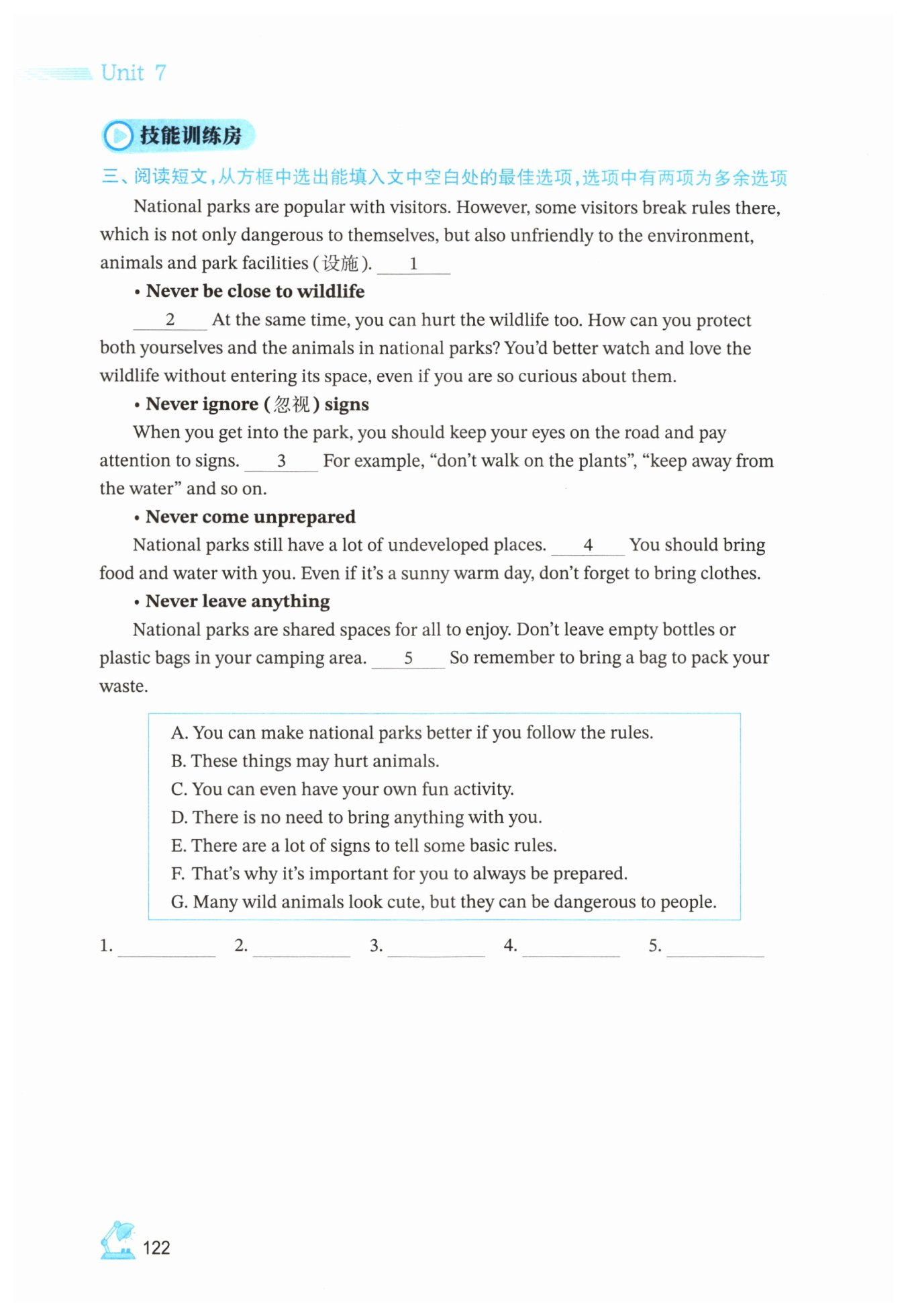 1. A 2. G 3. E 4. F 5. B