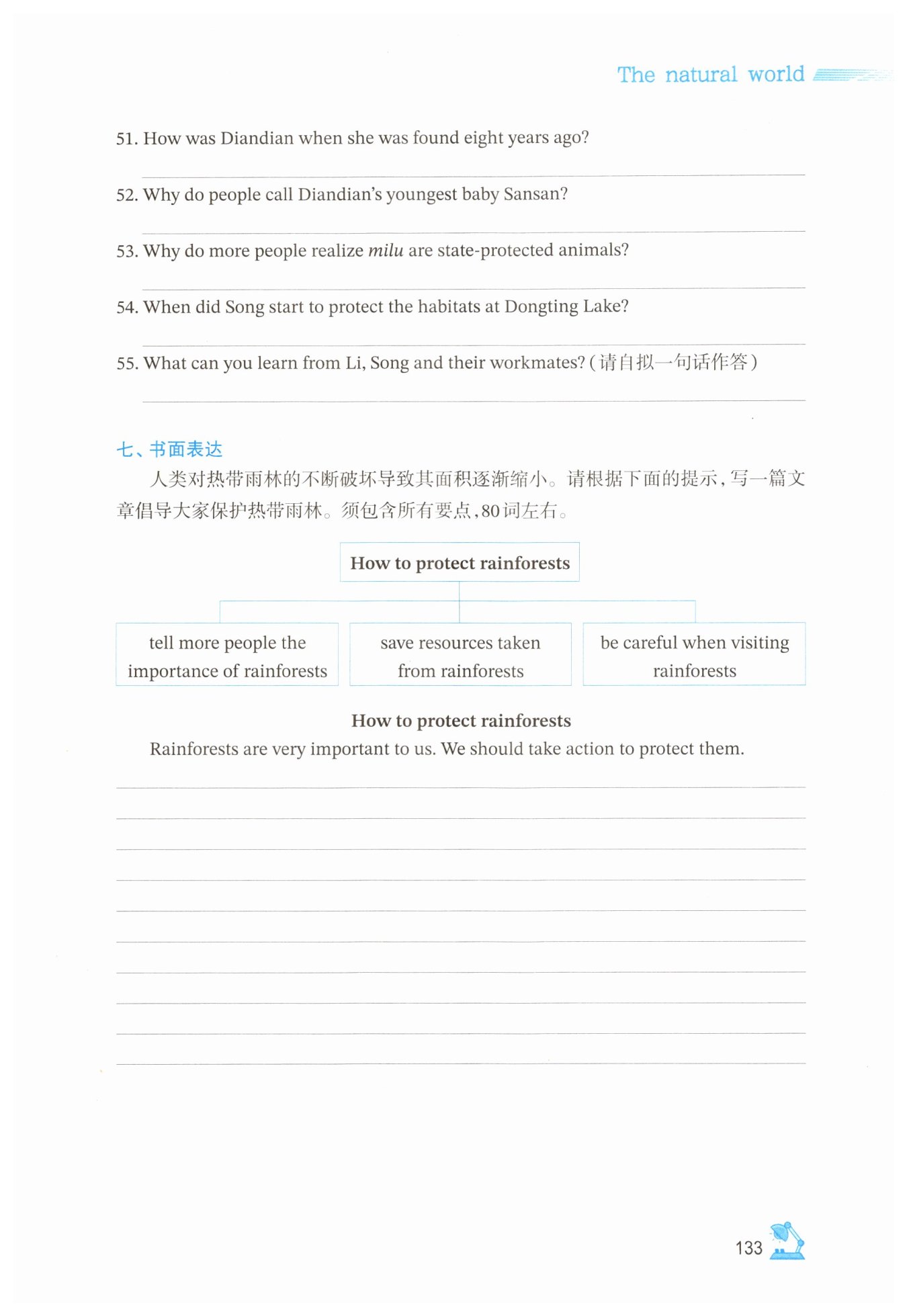 Second, save resources taken from rainforests in daily life. We can use both sides of paper