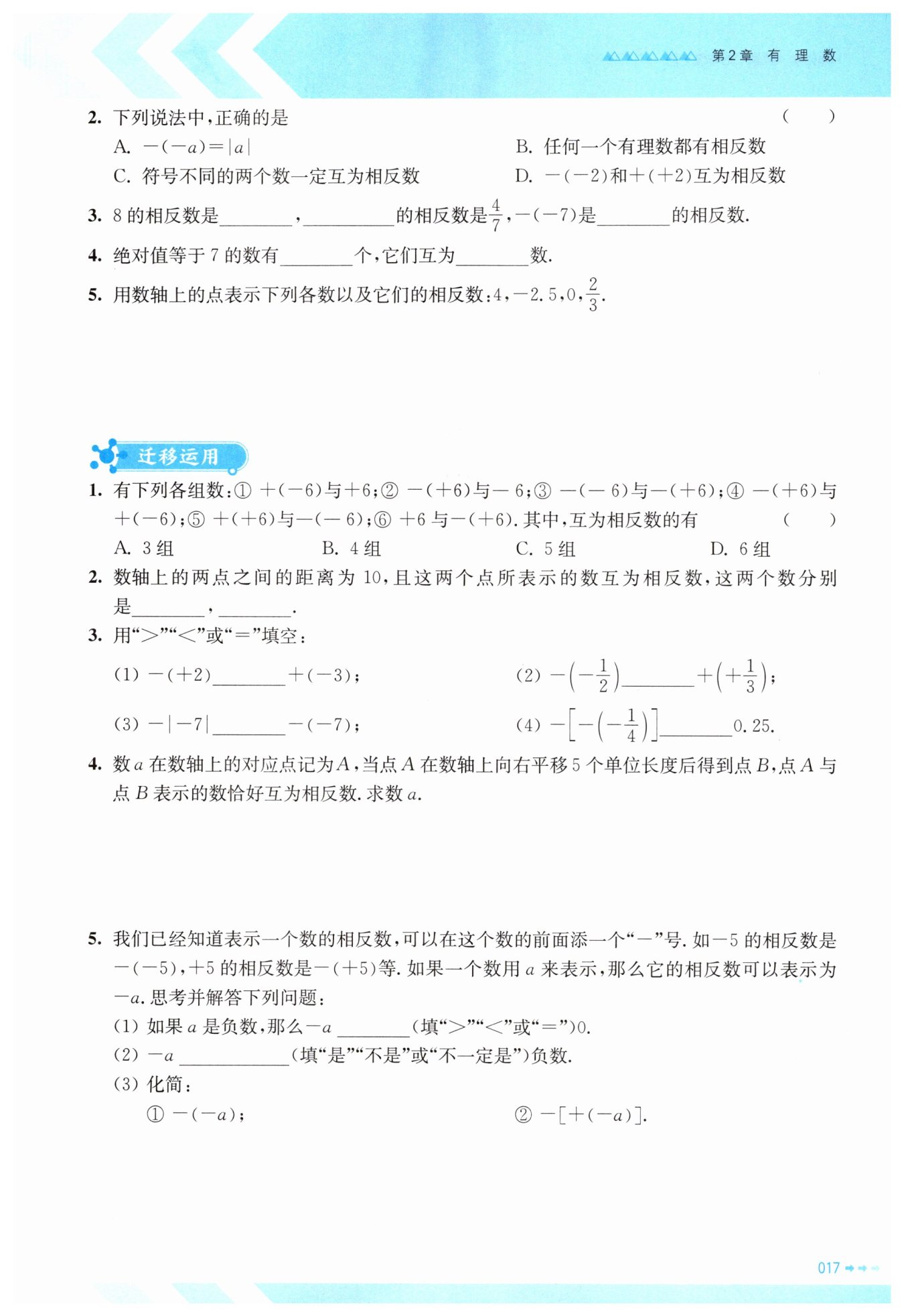 2. 對于第二個空,同樣根據(jù)相反數(shù)的定義,設(shè)某數(shù)為$x$,則$x + \frac{4}{7} = 0$,解得$x = -\frac{4}{7}$。
