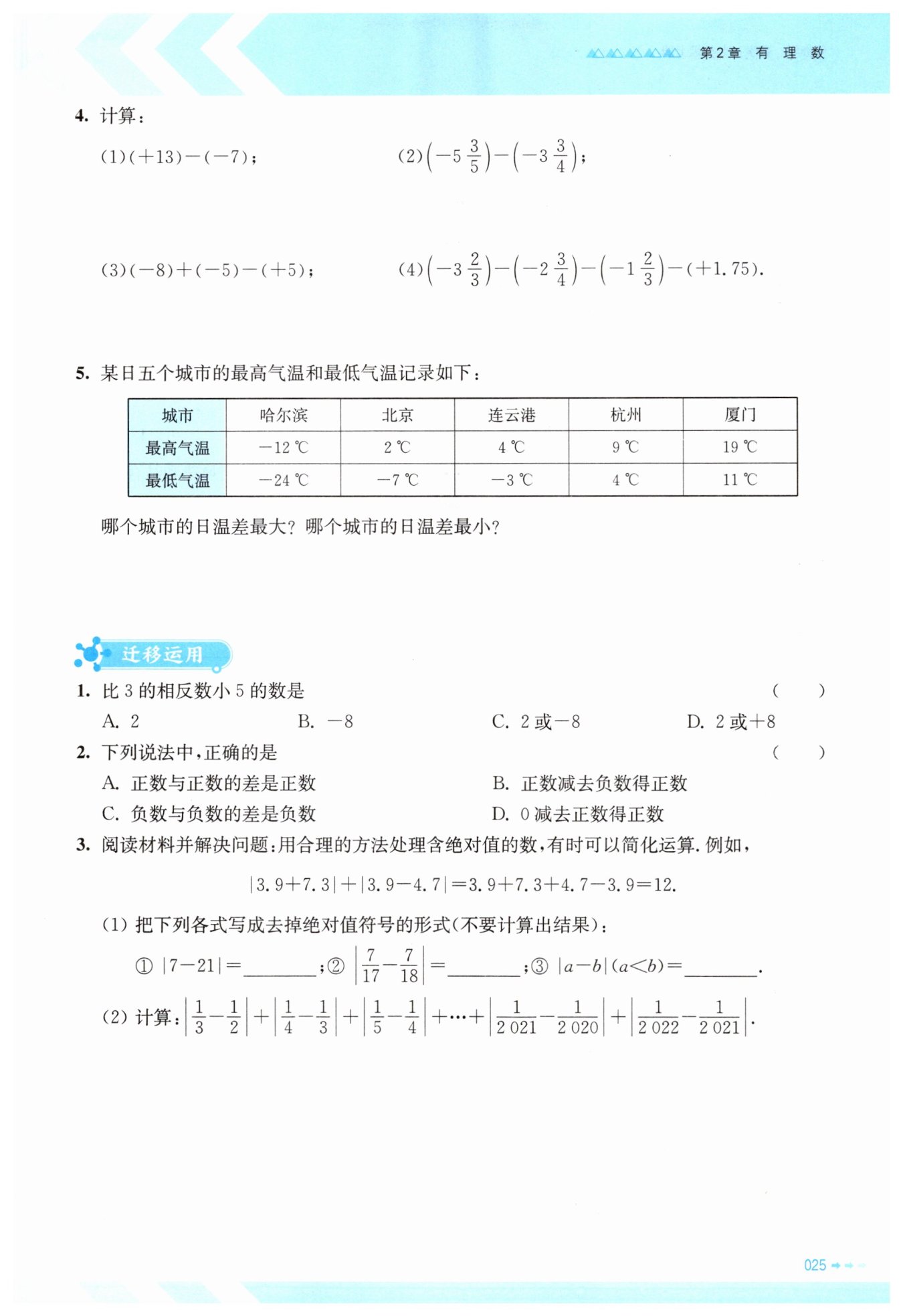 (1) 4比-2大多少,計(jì)算4 - (-2) = 4 + 2 = 6;-5比3小多少,計(jì)算3 - (-5) = 3 + 5 = 8。