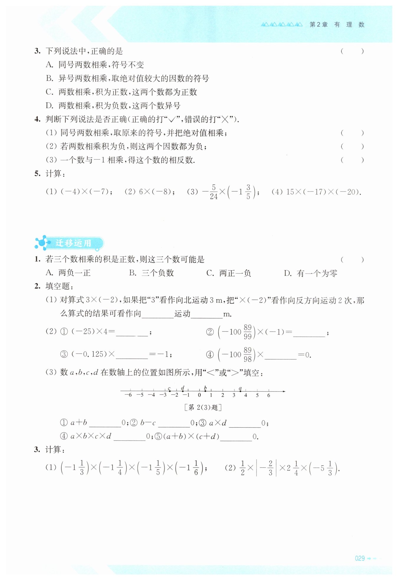 (1) 根據有理數的乘法法則,同號兩數相乘,結果的符號為正,并把絕對值相乘。原題說法“取原來的符號”是不準確的,因為同號的兩個數相乘,結果總是正的,而不是取它們原來的符號。