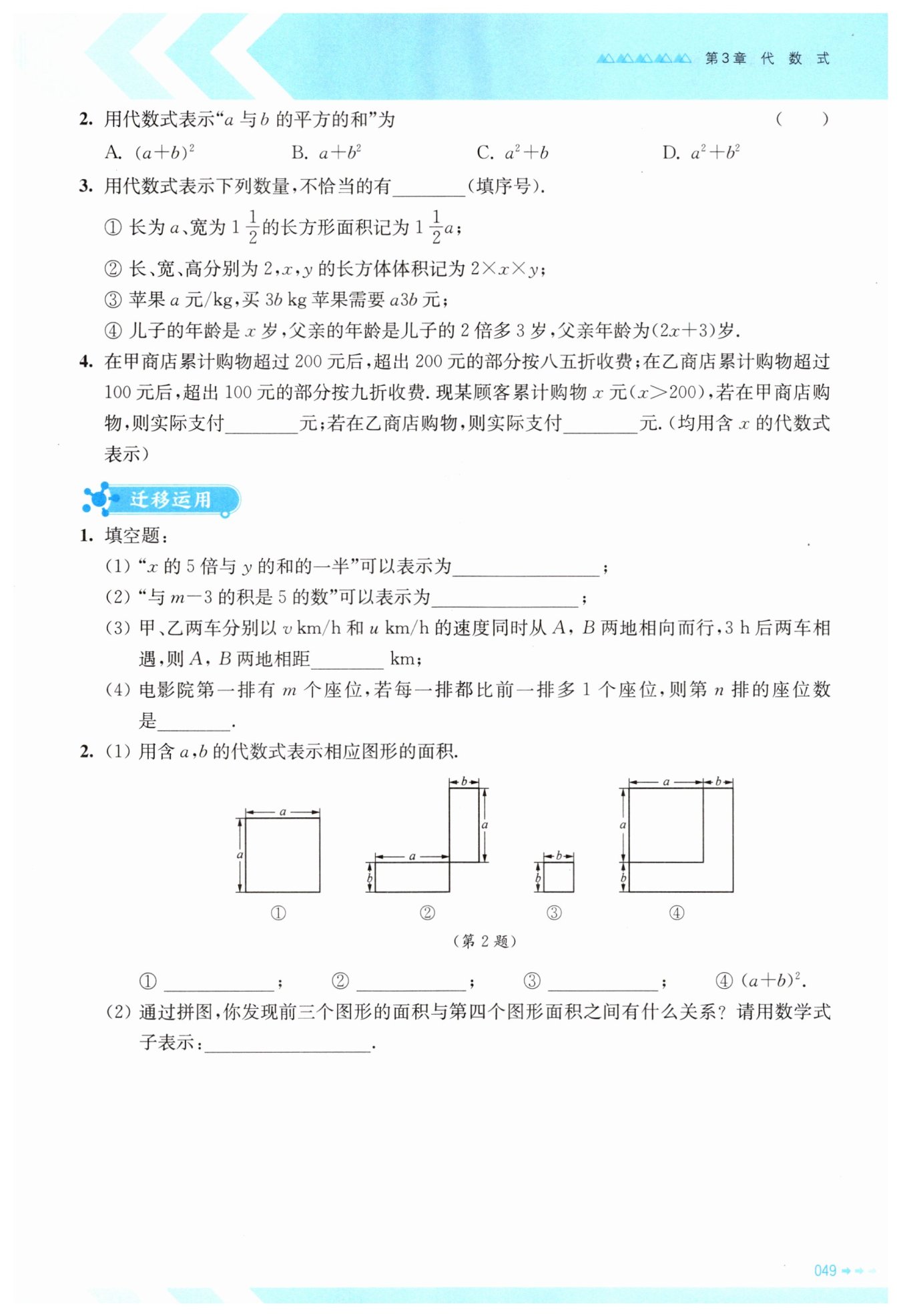 (3) 甲3小時行駛3v km,乙3小時行駛3u km,兩地距離為3v+3u=3(v+u) km;