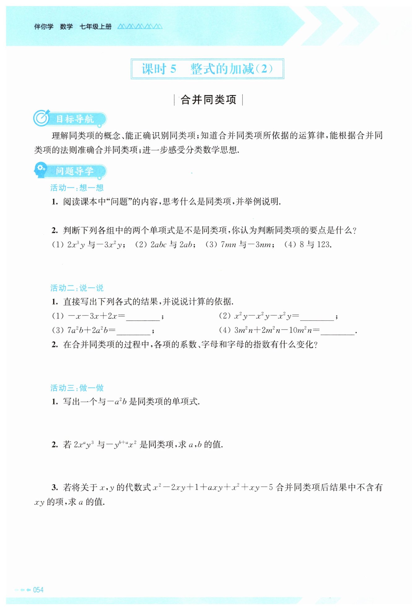 (3) 對(duì)于 $7a^{2}b+2a^{2}b$,由于它們都是同類項(xiàng)(即都含有 $a^{2}b$ 的項(xiàng)),我們可以直接進(jìn)行加法運(yùn)算: