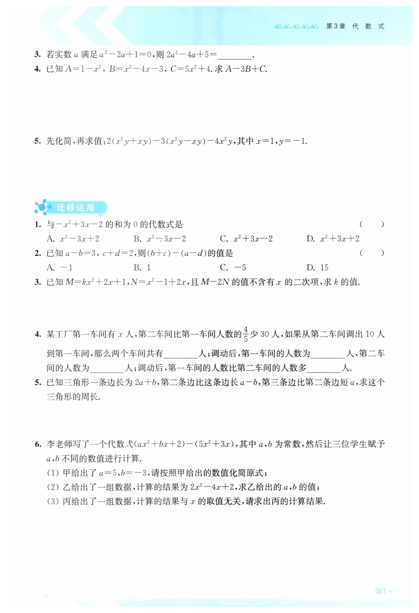 $ x + \left( \frac{4}{5}x - 30 \right) = \frac{9}{5}x - 30 $$ 總?cè)藬?shù)在調(diào)動前后不變,故填 $\frac{9}{5}x - 30$。 3. 調(diào)動后: 第一車間人數(shù):$x + 10$ 第二車間人數(shù):$\left( \frac{4}{5}x - 30 \right) - 10 = \frac{4}{5}x - 40$ 4. 人數(shù)差為: $