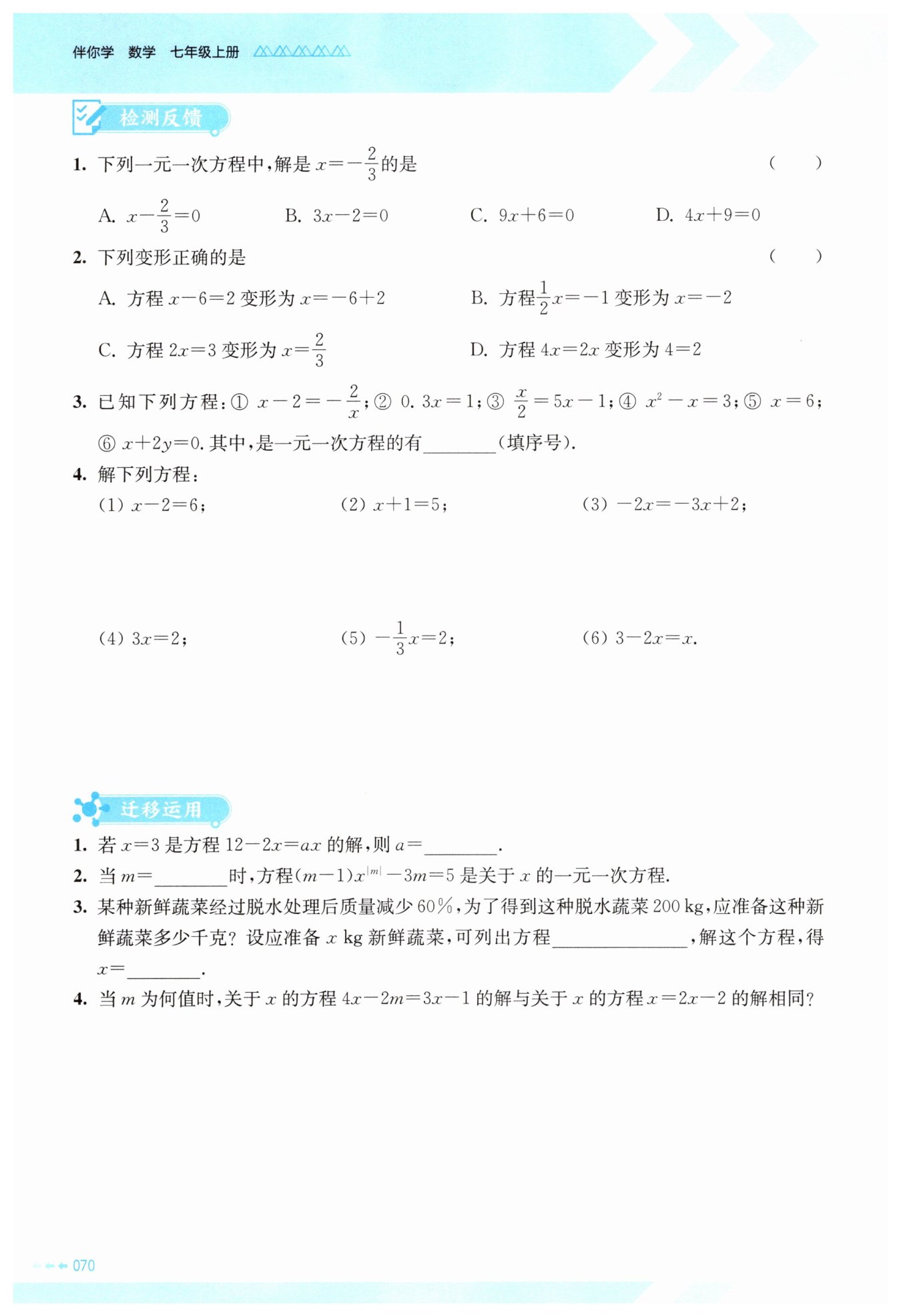 ②$0.3x= 1$:只含有一個(gè)未知數(shù)$x$,且$x$的最高次數(shù)是1,是一元一次方程。