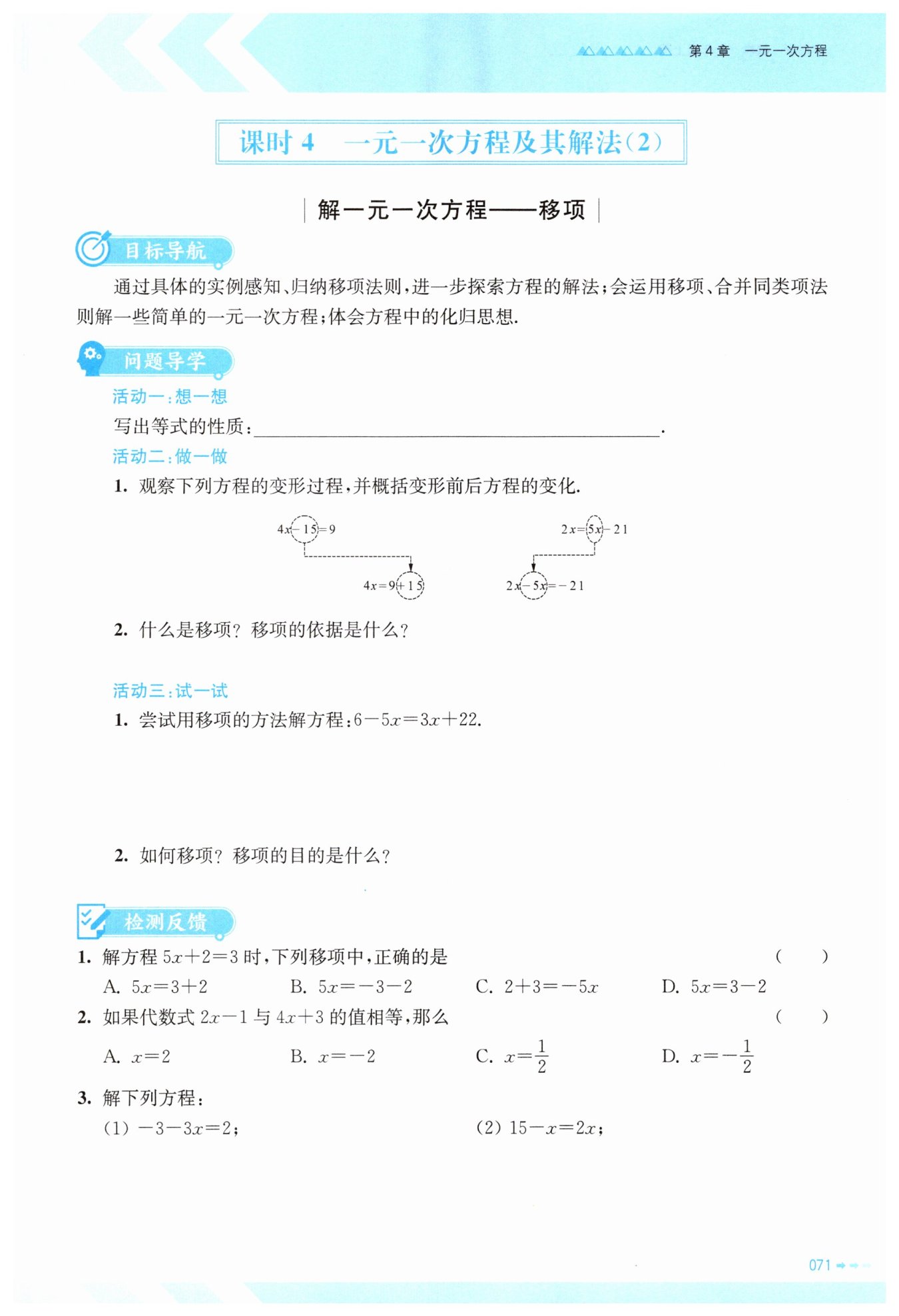 把方程中的某一項改變符號后,從方程的一邊移到另一邊,這種變形叫做移項。移項的依據(jù)是等式的基本性質(zhì),即等式兩邊同時加上(或減去)同一個數(shù)(或式子),結(jié)果仍相等。