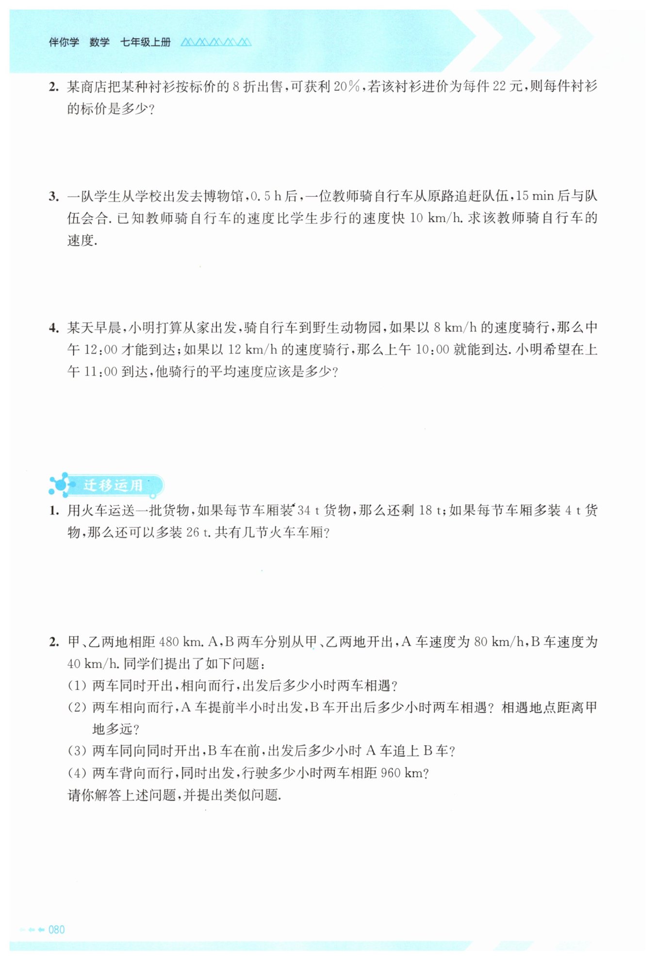 解:設(shè)教師騎自行車的速度為 $ x \, \text{km/h} ,$則學(xué)生步行的速度為 $ (x - 10) \, \text{km/h} 。$