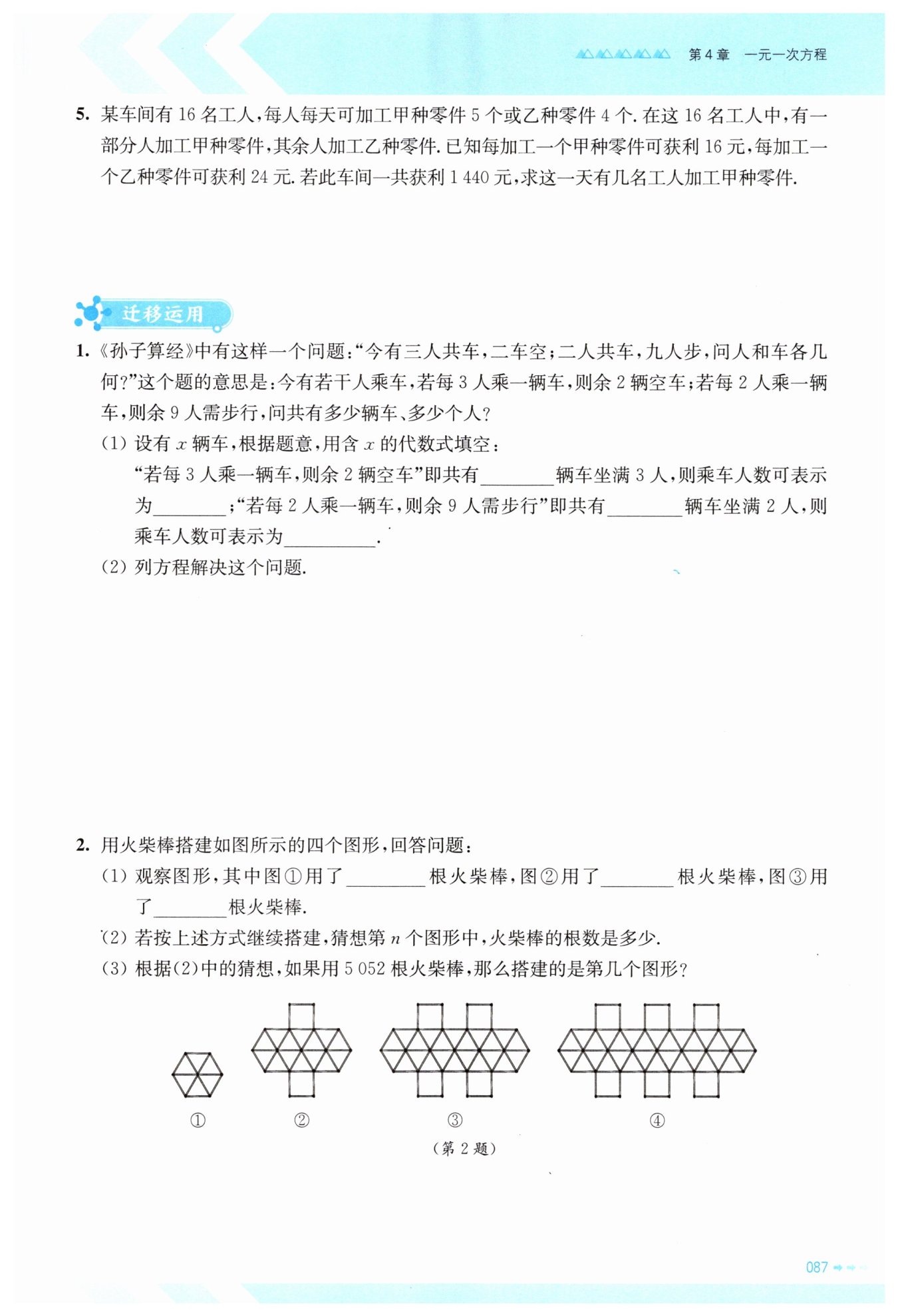 由題意,加工甲種零件的總利潤為$5\times16x$元,加工乙種零件的總利潤為$4\times24(16 - x)$元。