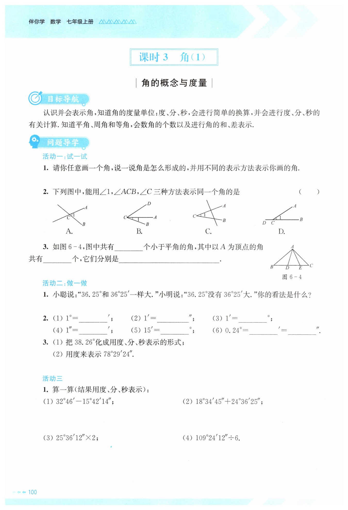$\begin{aligned}&109^{\circ}24'12'' ÷ 6 \\=& 109^{\circ} ÷ 6 + 24' ÷ 6 + 12'' ÷ 6 \\=& 18^{\circ} + (1^{\circ}×60 + 24)' ÷ 6 + 2'' \\=& 18^{\circ} + 84' ÷ 6 + 2'' \\=& 18^{\circ} + 14' + 2'' \\=& 18^{\circ}14'2''\end{aligned}$
